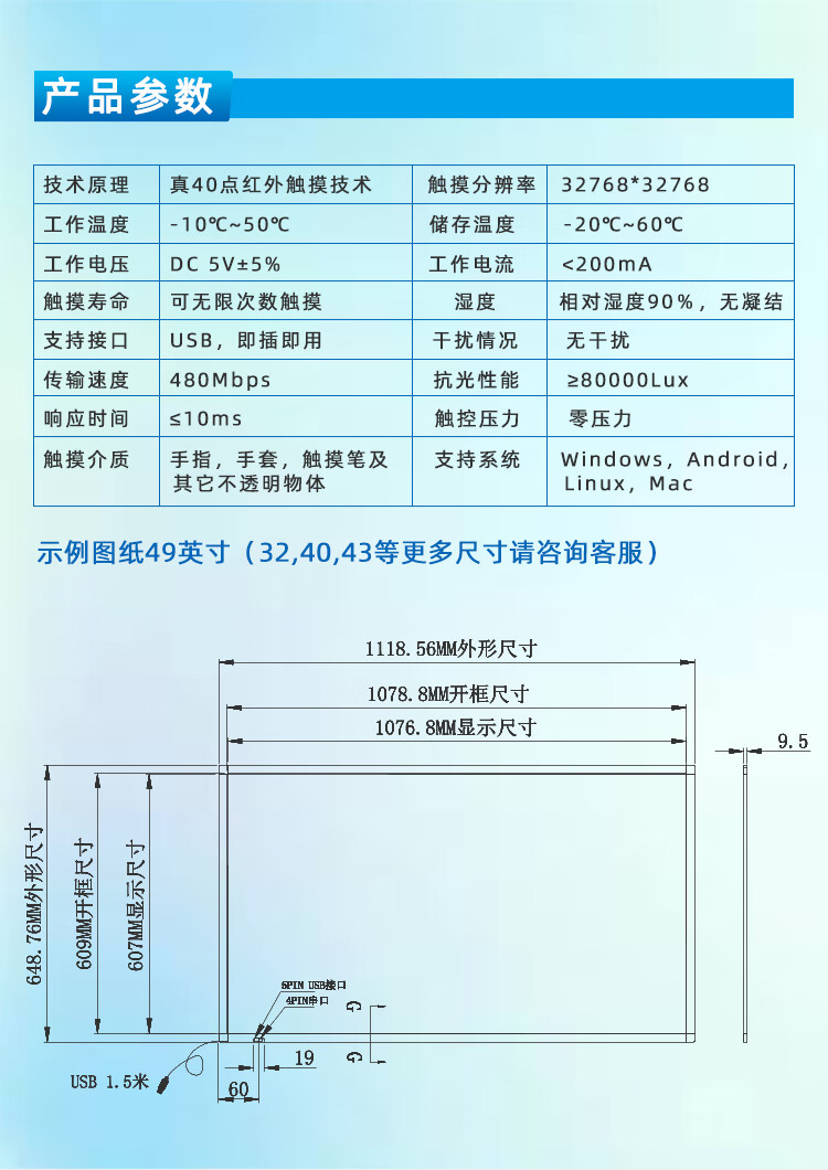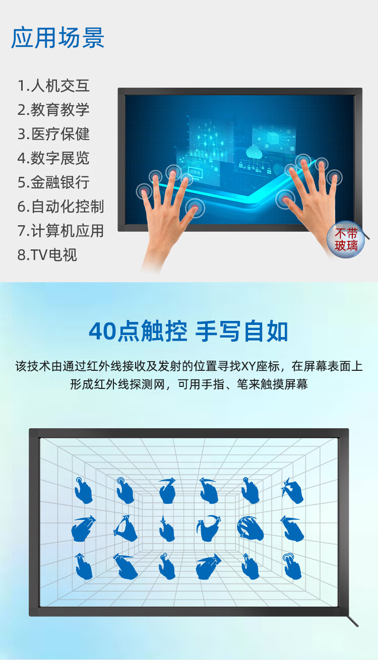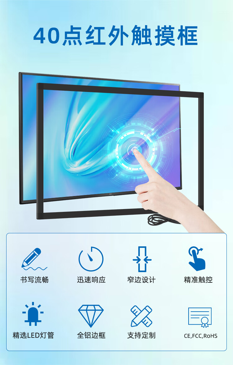 格林触控 红外触摸框 LED显示屏广告改装 定制拼接触摸框真40点触控 86英寸(真40点触摸)