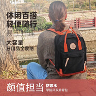 杉木山装双肩包日系学院风女款简约原宿风通勤大容量帆布防水2022新款 黑色 20L