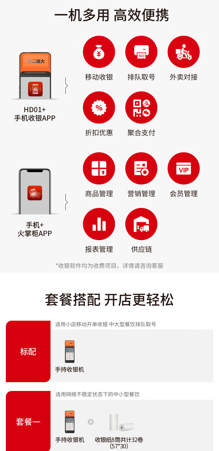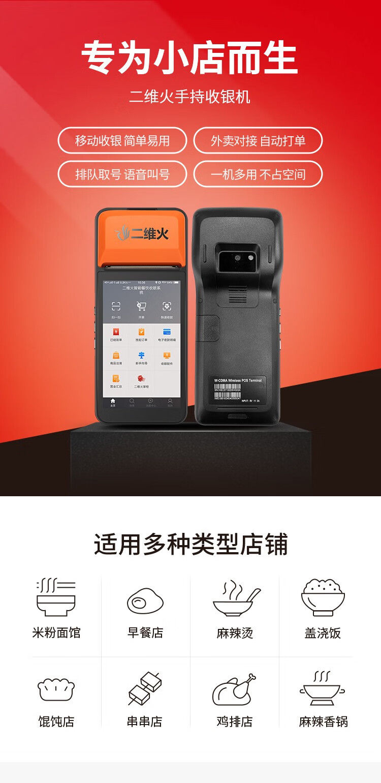 二维火(2Dfire) 手持收银机一体机扫码支付点餐 餐饮移动收款 外卖接单打印 4G网络 点菜宝 【标配】 支持WiFi 移动联通4G