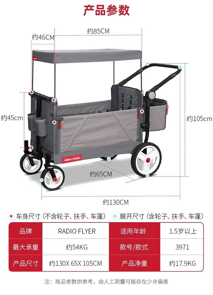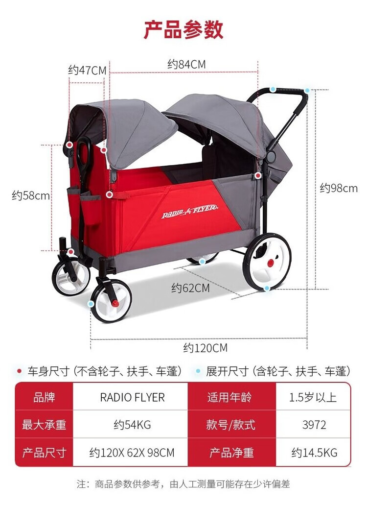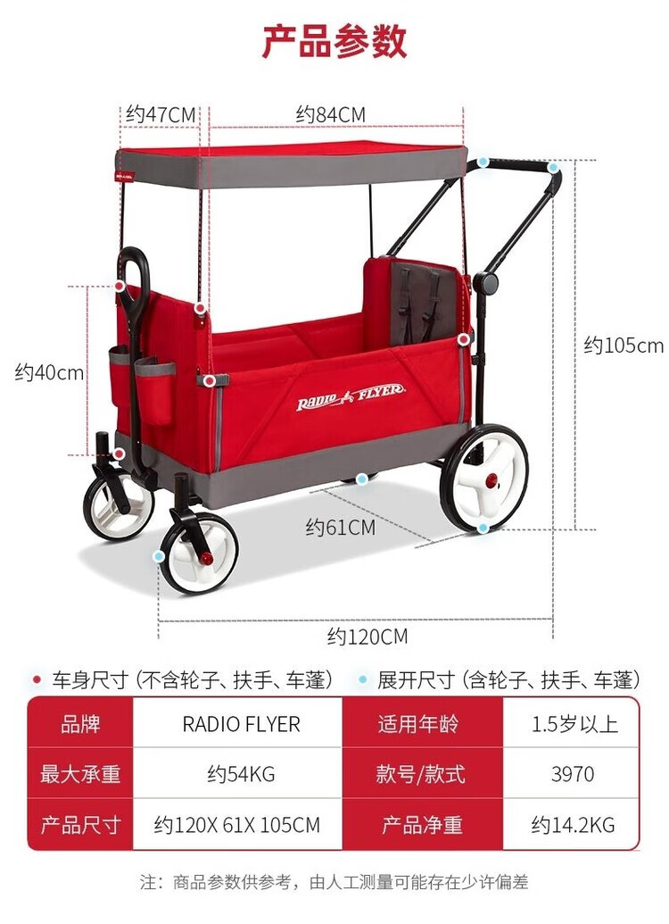 Radio Flyer瑞飞儿美国RadioFlyer多功能儿童手拉车带帐篷可折叠四轮露营车 3957红色