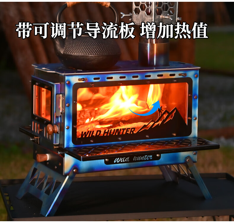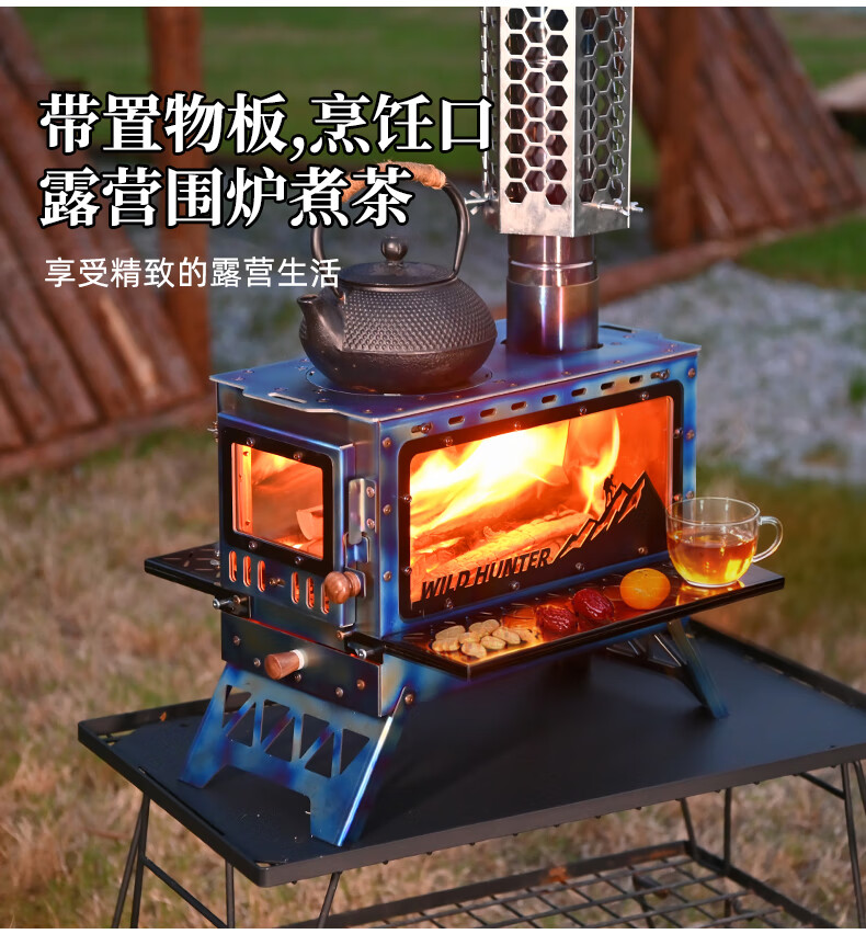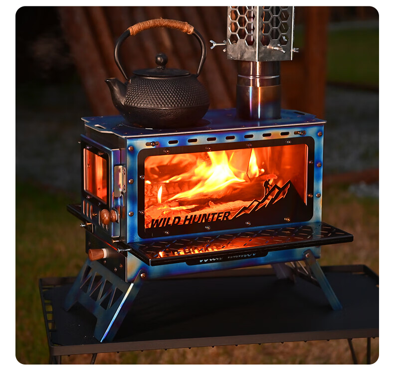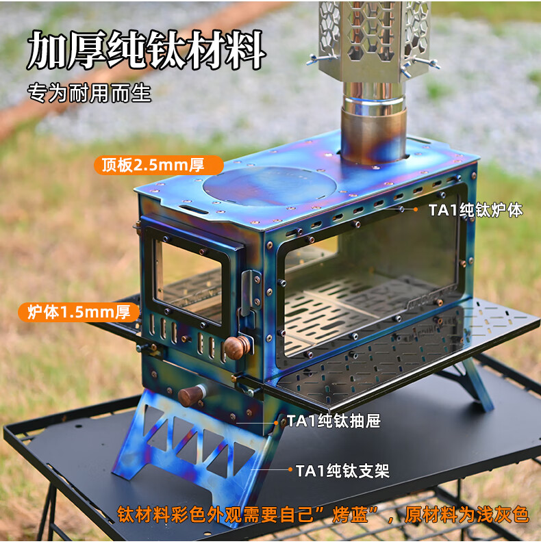 原始人纯钛壁炉取暖野营野餐易燃耐烧篝火便携户外露营取暖器炊具炉具 暖霞钛壁炉【赠加密收纳袋】