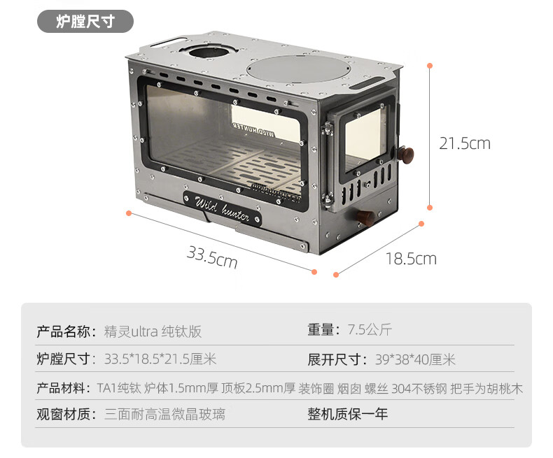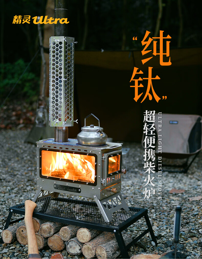 御质户外露营纯钛精灵系列柴火炉超轻烧水灶取暖帐篷室内观火壁炉 (纯钛)精灵Ultra 柴火炉-标配