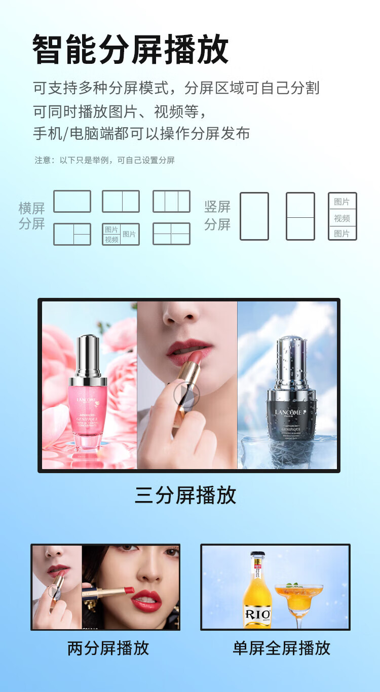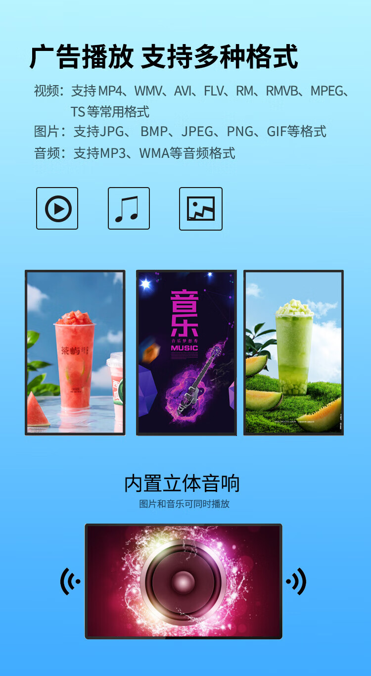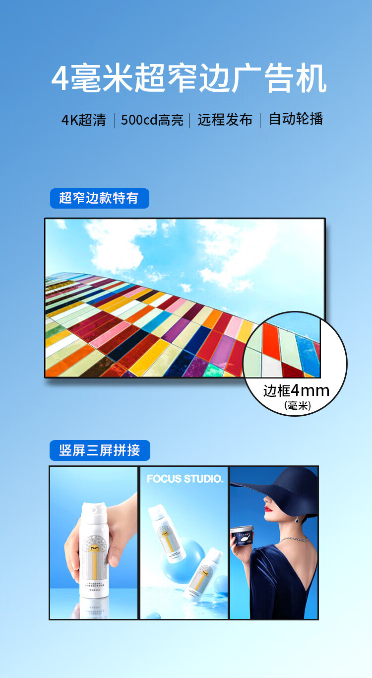 长条形广告机一体机液晶高清显示屏图片视频分屏播放信息宣发定制海报广告展示屏长条屏 86英寸原装屏