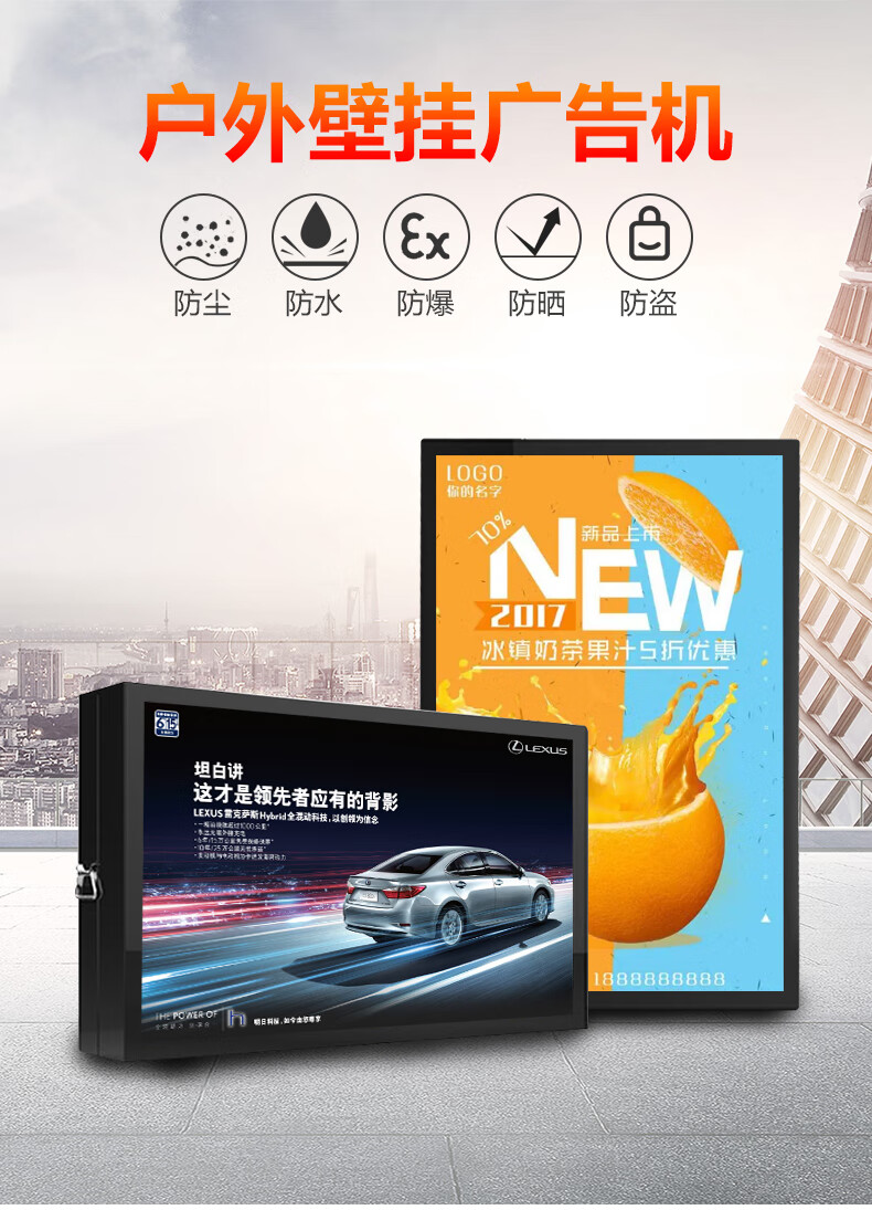 中迪长条形壁挂式触摸显示屏方形双面屏高亮户外广告机横竖屏圆形高清液晶大屏显示器触控广告机一体机 75英寸户外屏/非触摸