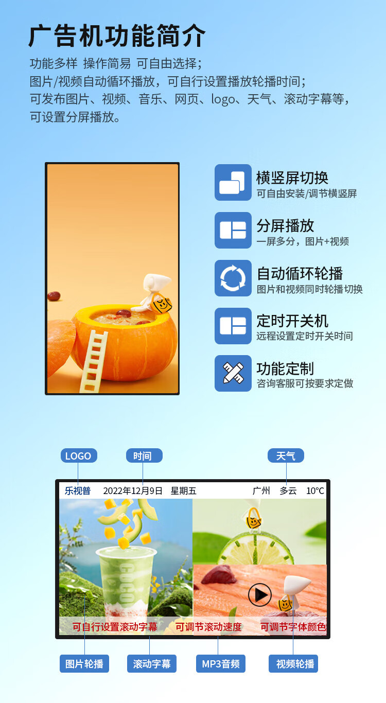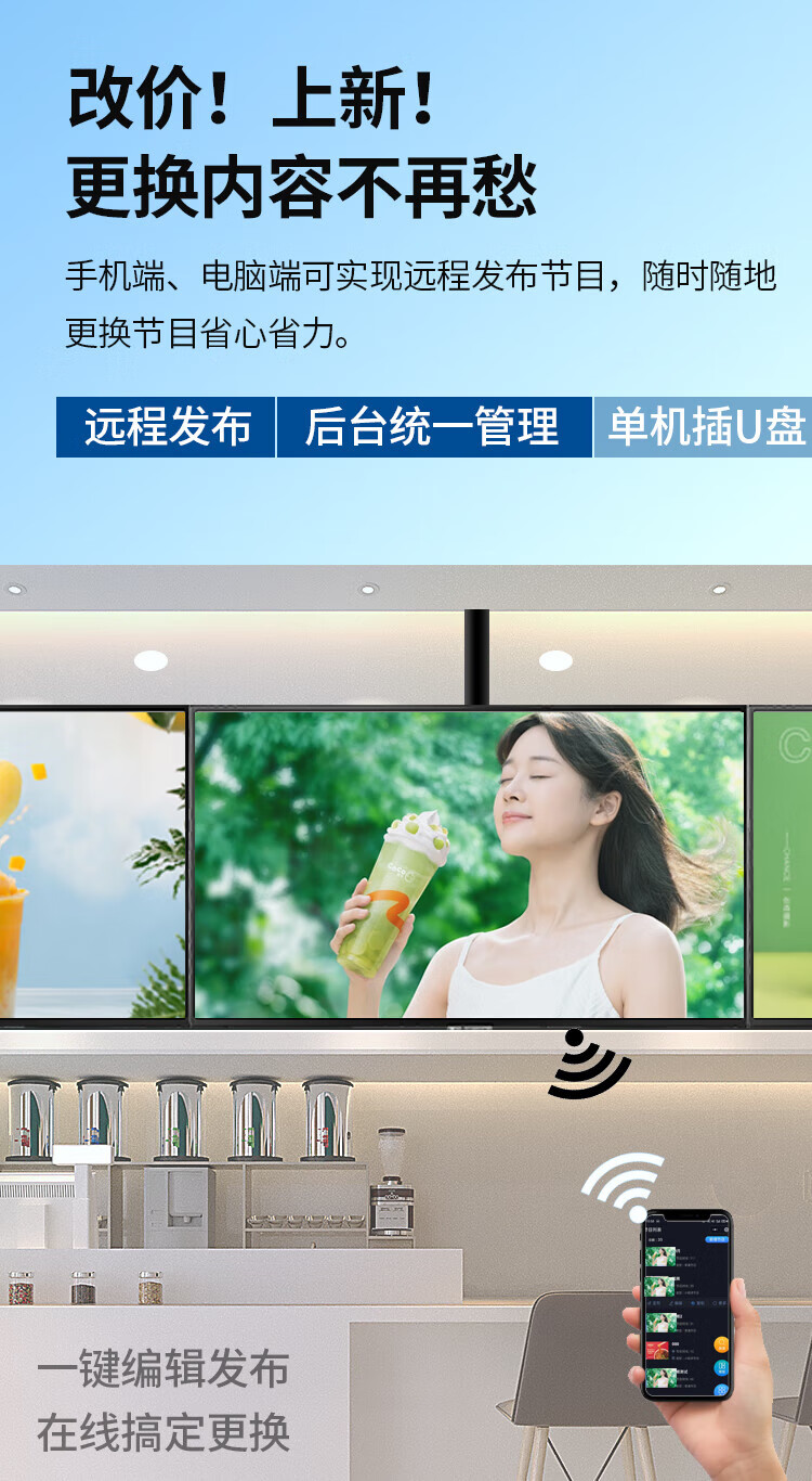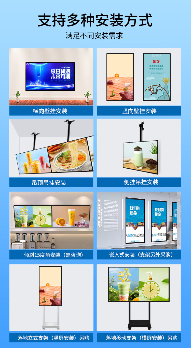 恩腾 壁挂吊挂广告机水果酒店液晶显示屏奶茶店吊装点餐价目表切换画面滚动灯箱展示牌海报机显示屏 21.5英寸单机吊挂广告机