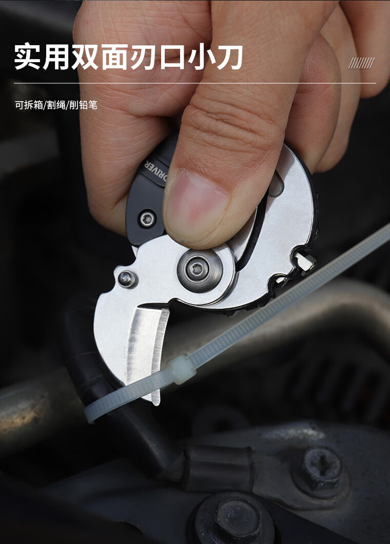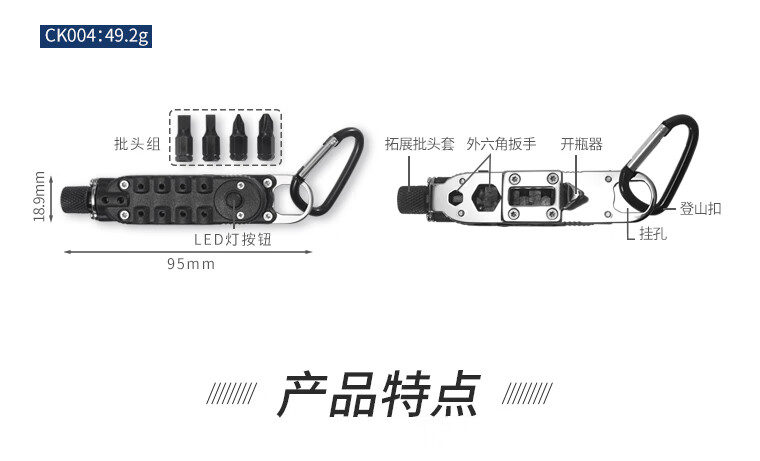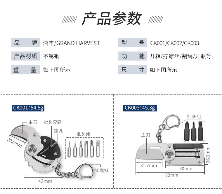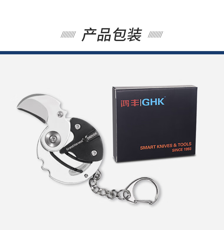 鸿丰(GRAND HARVEST)多功能EDC小工具户外随身钥匙扣开瓶器螺丝刀折叠扳手多用登山扣 GHK010