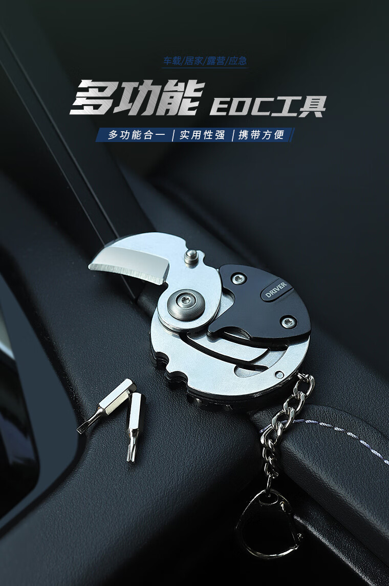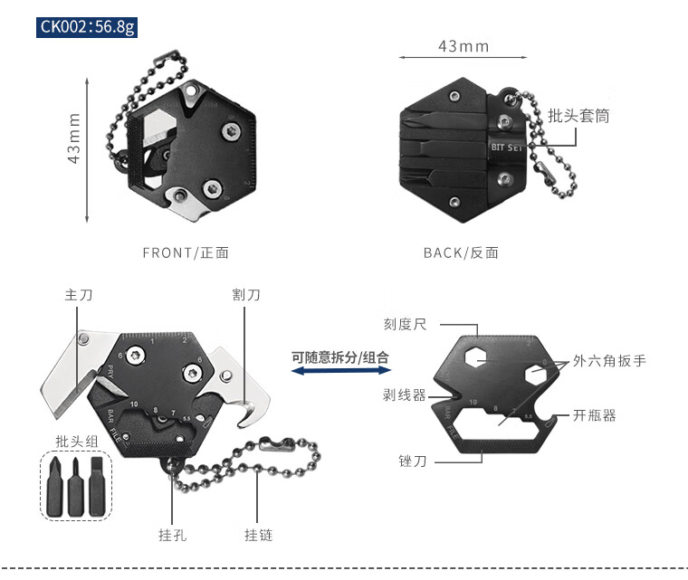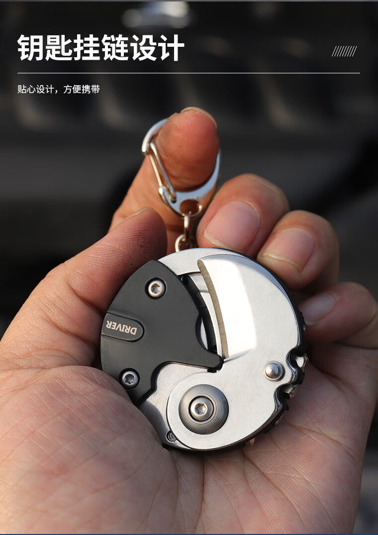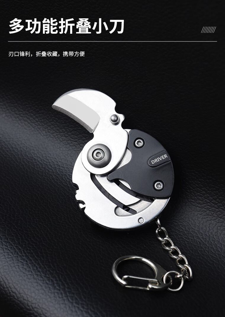 鸿丰折叠多功能小刀钥匙挂扣硬币刀折叠刀创意旅行装备EDC组合螺丝刀 CK001银黑