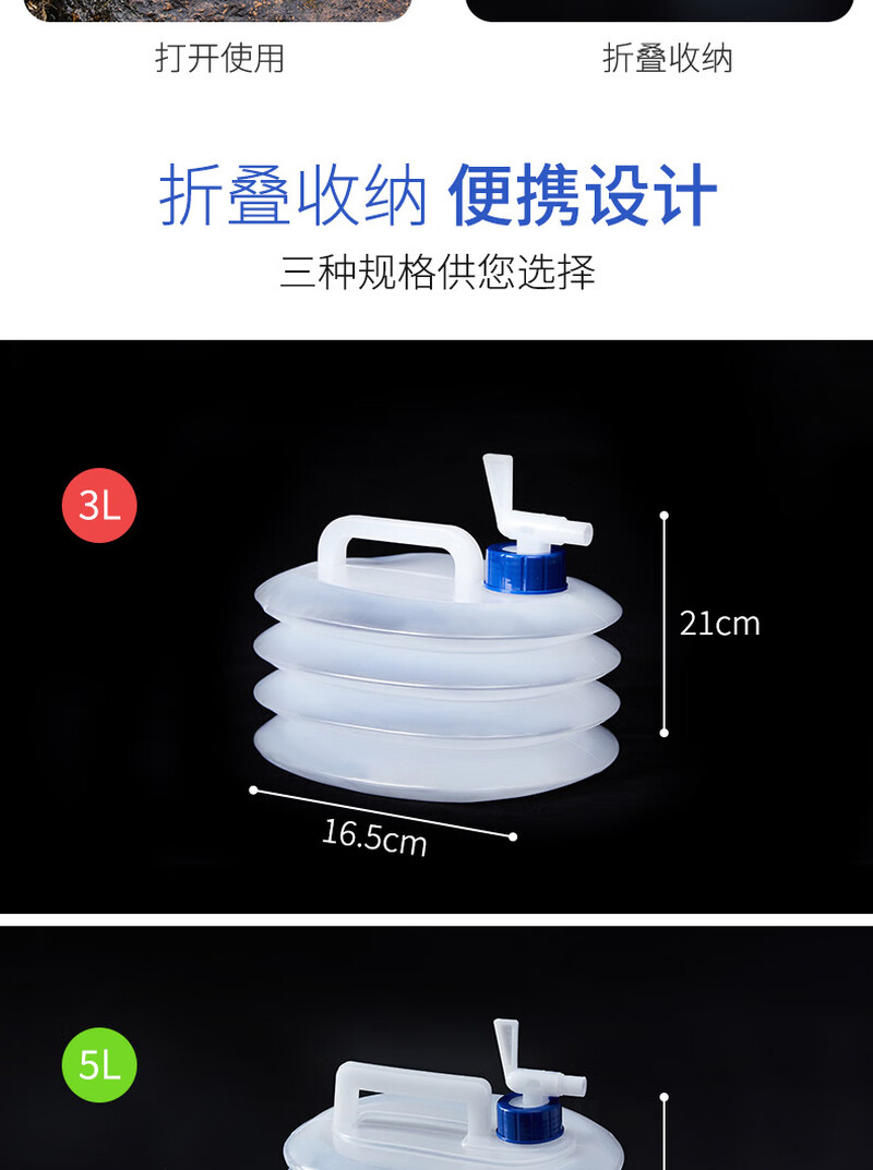 户外折叠储水桶自驾游车载便携装蓄水箱罐厨房塑料带龙头家用水桶 3L装