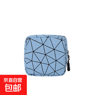 菱格PU皮卫生巾收纳包护垫便携式化妆包姨妈包随身零钱包小包 蓝色11.5x11.5x3cm