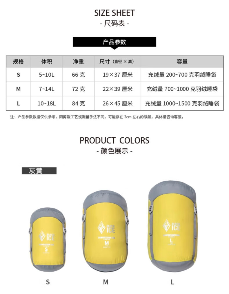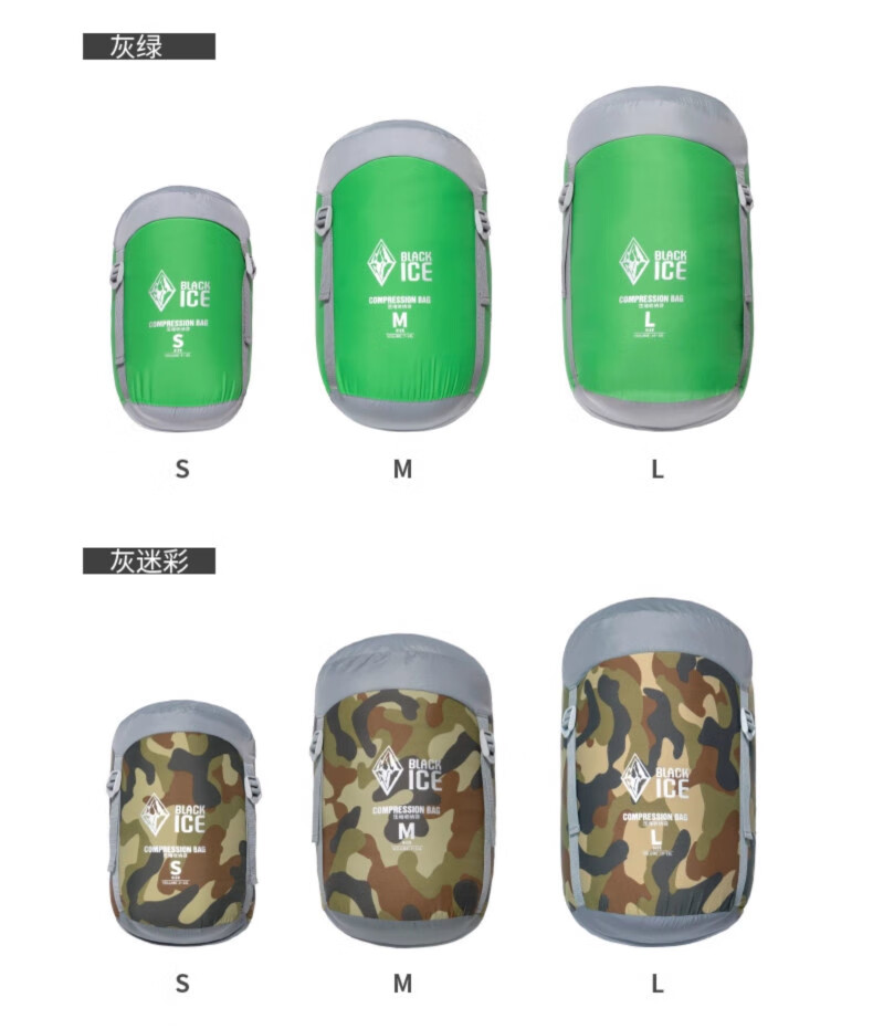 黑冰(BLACKICE)羽绒睡袋压缩袋 旅行衣物收纳包整理袋 户外轻量收纳袋 灰迷彩L【用于1000-1500克睡袋】
