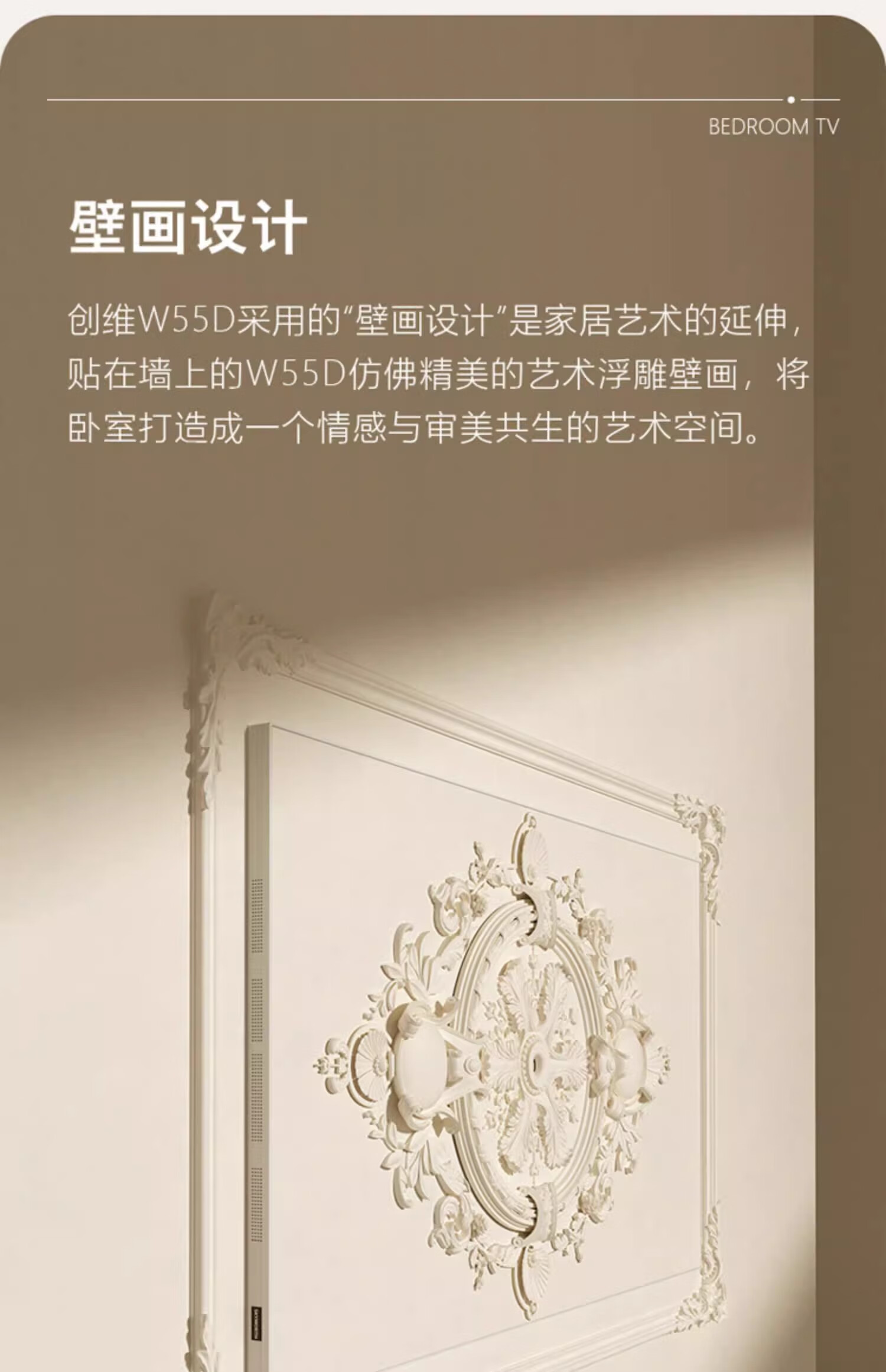 创维创维电视W55D 55英寸卧室壁纸壁画电视 无缝贴墙艺术壁画电视3+32G 55英寸 W55D