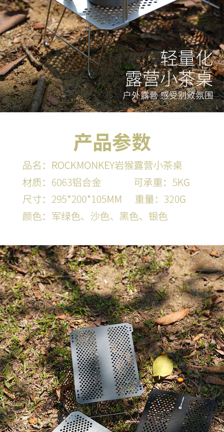 ROCK MONKEYROCKMONKEY岩猴户外折叠徒步桌铝合金轻量化小茶桌便携收纳咖啡桌 【银色】折叠桌+8.5mm灯杆套装