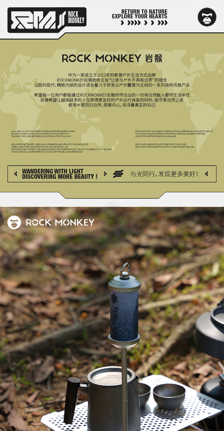 ROCK MONKEY岩猴S2户外露营便携式轻量化迷你野营灯充电徒步背包灯磁吸可充电 S2露营灯-白色