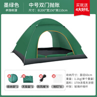 叶余帐篷户外3-4人全自动野营露营账蓬2单人野外加厚防蚊轻便速开 墨绿色 单个帐篷(送收纳包) 1人单门(无顶盖无涂银)狭小不建