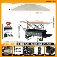 摆摊小推车户外露营车遮阳伞升降桌营地手拉车野餐折叠拖车夜市车 10寸飞机轮【黑绿车+120木纹桌子+大伞】拖斗款