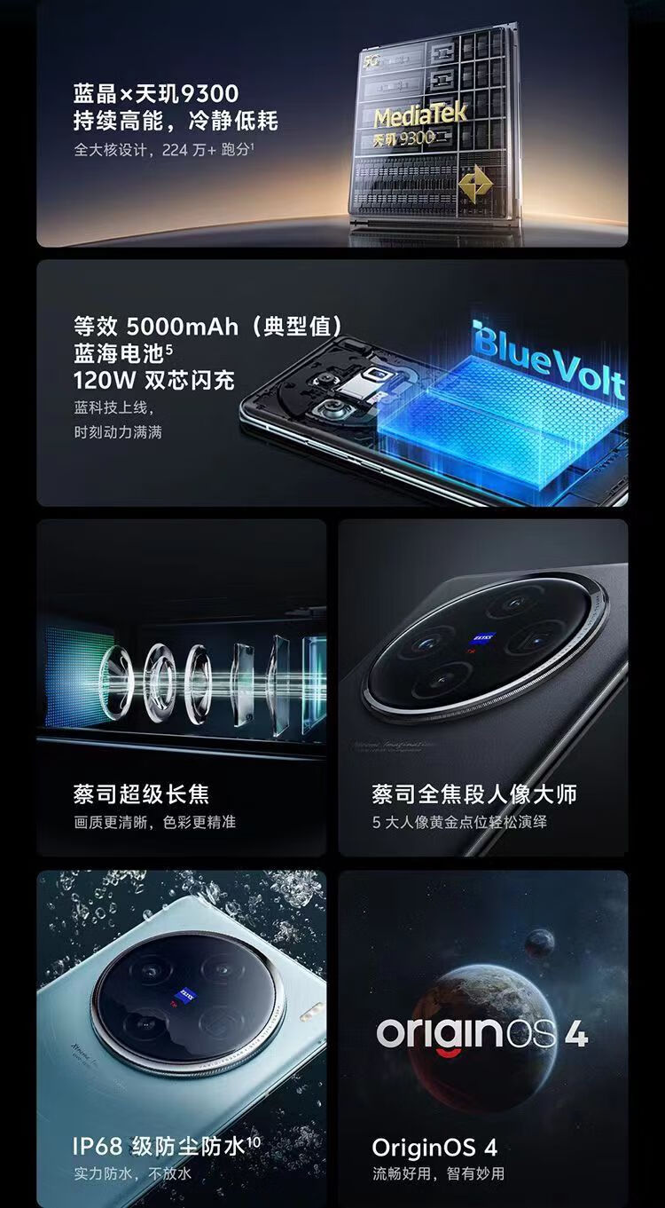 vivoX100长变焦 蔡司镜头 IP68级防水 蓝晶X天玑9300高性能游戏智能机 辰夜黑 16GB+256GB 单机+【品牌快充】+店铺质保1年