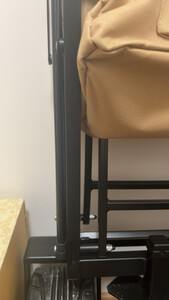 很结实,收起来也方便,就是没有收纳袋不太好放,还没找到合适的位置给他,需要有地方靠住,不然容易滑倒在地上,哈哈哈哈,很重,早知道应该买个窄轮的,可能会轻便一些