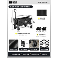 探险者露营车户外折叠推车营地车快递摆摊野餐车大容量野营拖车 【黑色升级款160L+桌板+QQ椅*2】