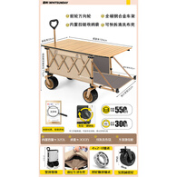 疆屿户外露营车便携折叠营地推车野营拉车摆摊快递拖车儿童可躺拉车 月牙白越野推拉一体+特大桌面