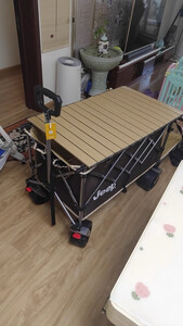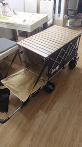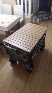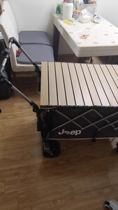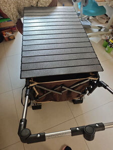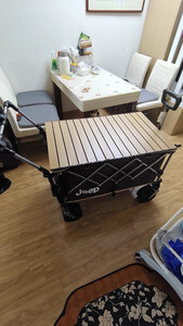 用料和做工非常扎实,车架厚重稳当,承重能力超强!装满露营装备、食材饮料甚至再加个娃,拉起来都稳稳当当,崎岖点的草地、碎石路也能轻松应对,轮子很顺滑,转向灵活,省力效果显著。 配套的桌板设计巧妙,安装非常简单快捷,卡在车框上瞬间就把拖车变成了一个稳固的小餐桌!高度合适,放食物饮料、卡式炉、甚至当个小操作台都太方便了。桌面材质也容易清洁。