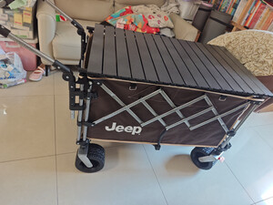 JEEP吉普露营推车可折叠户外手推野餐车营地拖车拉杆小拉车野营车 10寸加宽坦克轮【可折叠】配桌板
