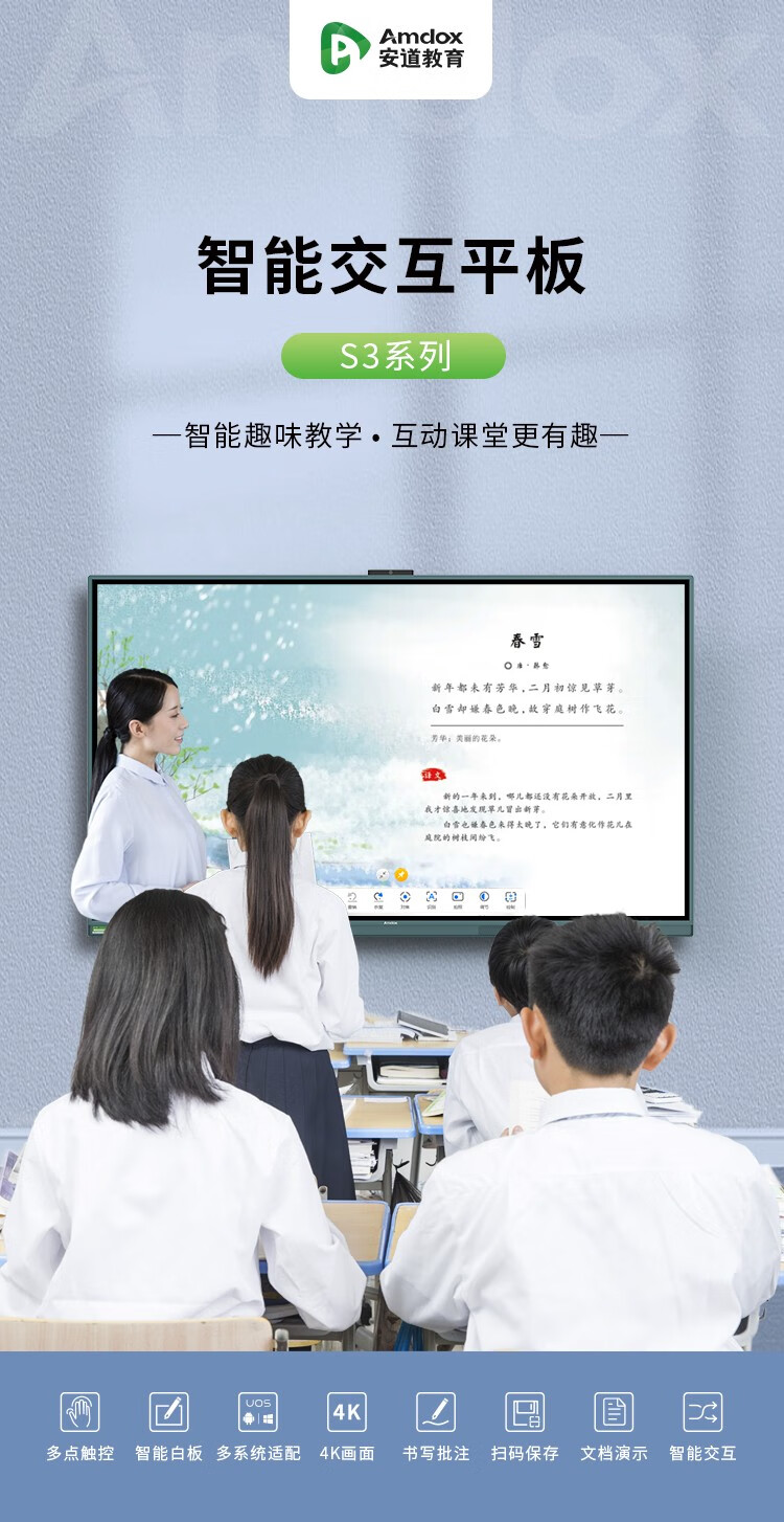 Amdox安道/Amdox S3系列75英寸智能交互平板AME-S375KF OPS可选配 内置