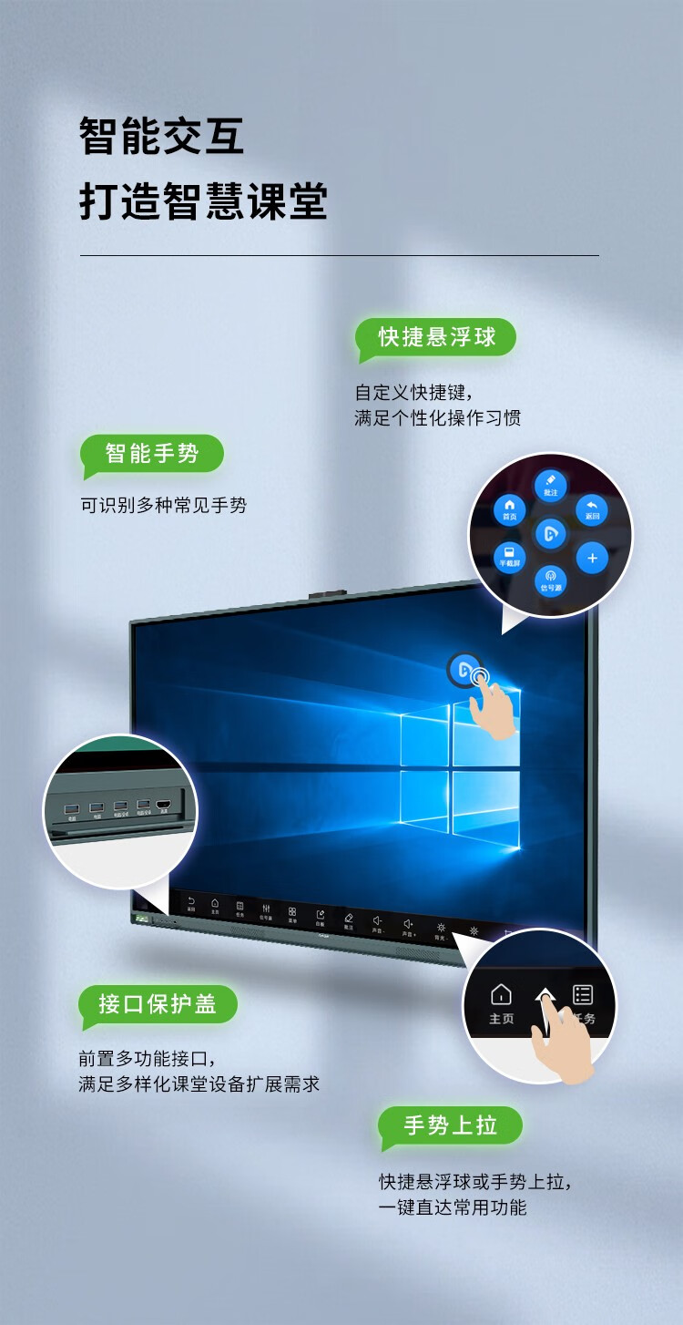 智野智慧推拉黑板教学一体机多媒体触摸屏可视化推拉黑板触控学校培训教室电子白板视频播放器 win10【i7/8+256G】高配 75英寸触摸+推拉绿板400*130CM