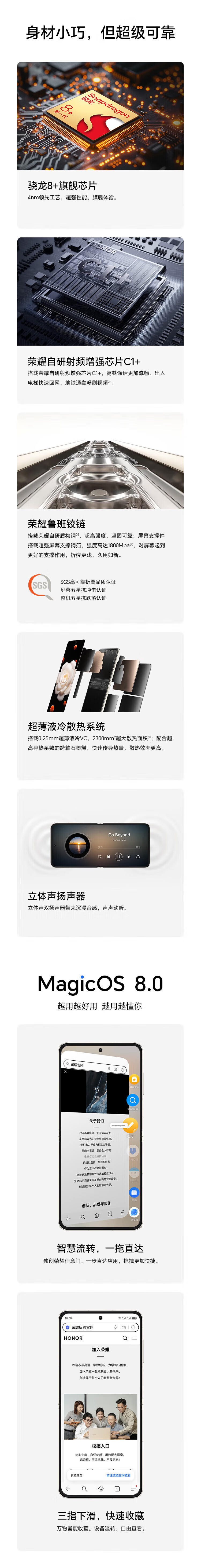 HONOR展机MagicVFlip新款小折叠屏4.0英寸大外屏单反级正品智能手机 山茶白 12G+512G 赠运费险|详情咨询客服