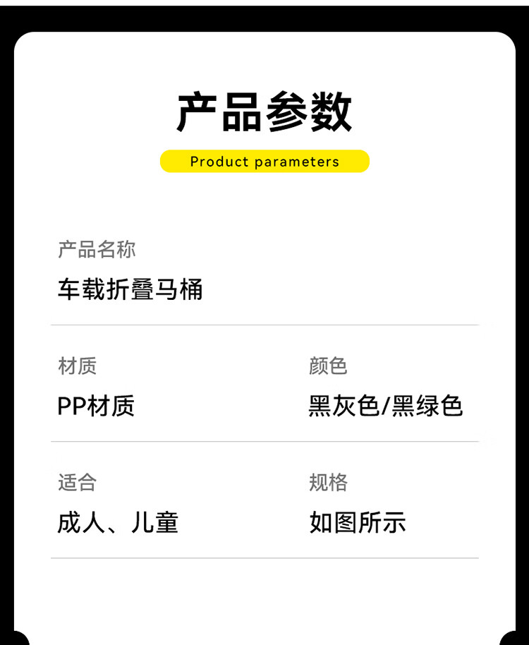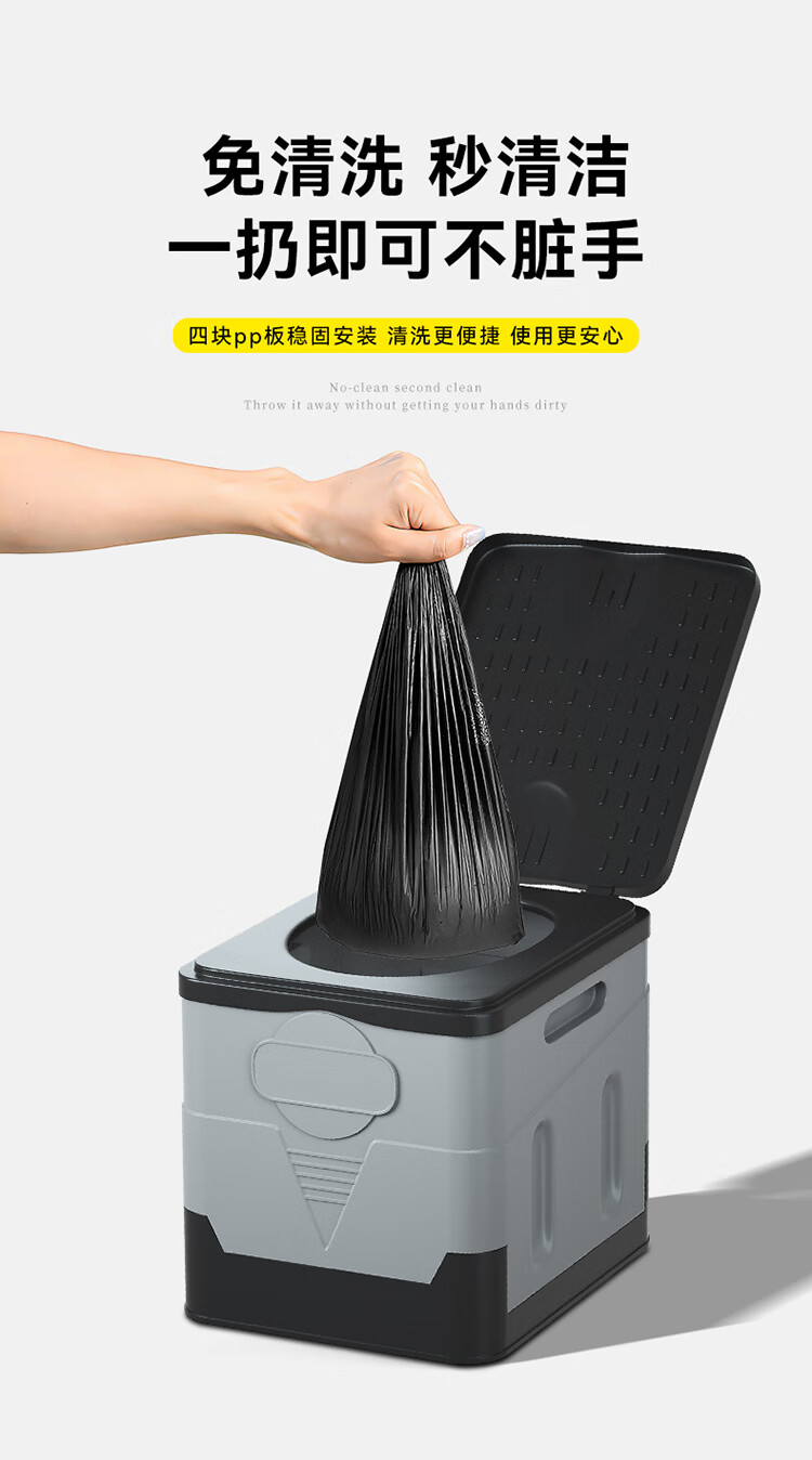 何佳功户外车载马桶便携式折叠应急神器旅行厕所露营可折叠坐便器防臭 黑色马桶+垃圾袋+固化剂