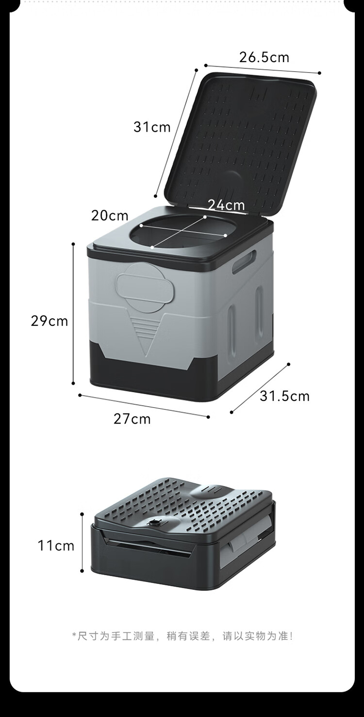 飒望德国车载马桶超大号便携式防臭户外便携厕所折叠露营大人野营旅行 大尺寸-圆形灰色【送12固化剂+12垃圾袋】