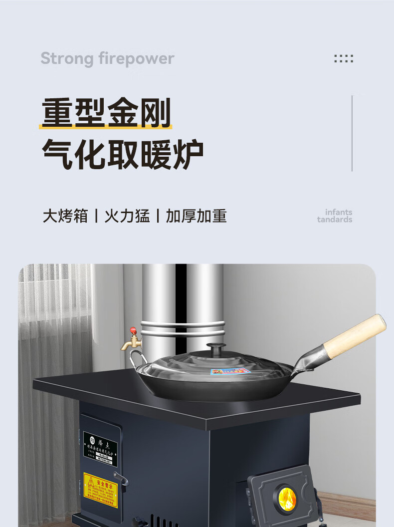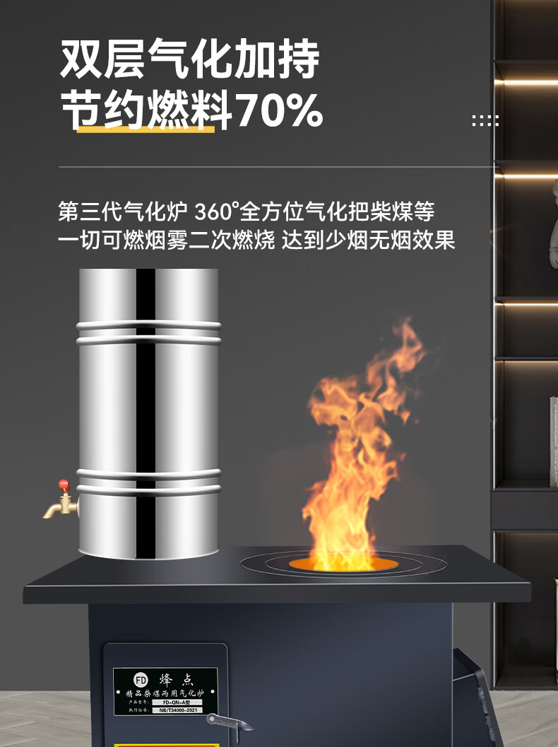柴煤两用,用了一段时间效果很不错,功能多多,冬日取暖的好产品,又能烧菜煮饭,功能齐全,很满意