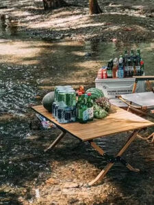 探险者户外桌椅套装一桌四椅折叠桌椅蛋卷桌克米特椅露营装备全套七件套 木色架加大卡其*6+120木色蛋卷桌