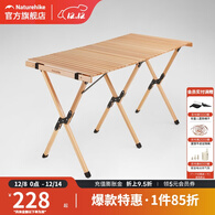 挪客Naturehike户外露营实木蛋卷桌便携式折叠野餐桌子 高款-原木色