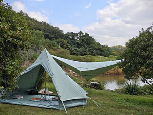 家人们,我不允许有人还没发现挪客天幕杆这个露营神器!🥳 _ 之前露营的时候,用过不少天幕杆,要么太重背着累,要么安装麻烦浪费时间,要么就是不够稳固,遇到点风雨就摇摇晃晃。直到我入手了挪客天幕杆,才彻底解决了这些烦恼。 _ 这款天幕杆真的超级轻便,仅重1.2kg,比一本厚书还轻,背着它走完全没压力,放在背包里也不占地方。安装更是简单,3秒就能快装完成,轻轻一拉,“咔嚓”一声,就稳稳立住了,就像给营地安了个坚固的小房子。 _ 它的承重能力也相当出色,能承重达80kg,稳稳撑起6㎡大天幕完全没问题。我上次在浙江莫干山露营,突然来了一场暴雨,狂风裹挟着雨点猛砸下来,我心里正发愁,没想到这根天幕杆稳如磐石,“风来不摇,雨打不塌”,让我和朋友们在天幕下安然无恙,尽情享受露营的乐趣。 _ 而且它适配90%主流天幕,适合山野、草坪、沙滩等多种场景,无论是新手小白还是经验丰富的露营达人都能轻松驾驭。材质上选用航空级铝材,不用担心变形问题,深空灰配色,耐脏又高级。 _ 有了挪客天幕杆,露营幸福感直接拉满!强烈推荐给所有喜欢露营的朋友们!👍