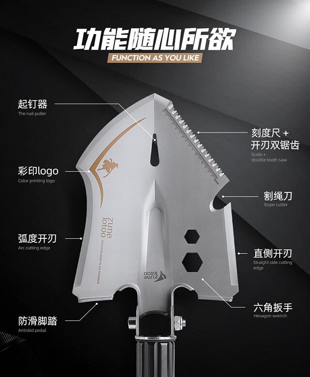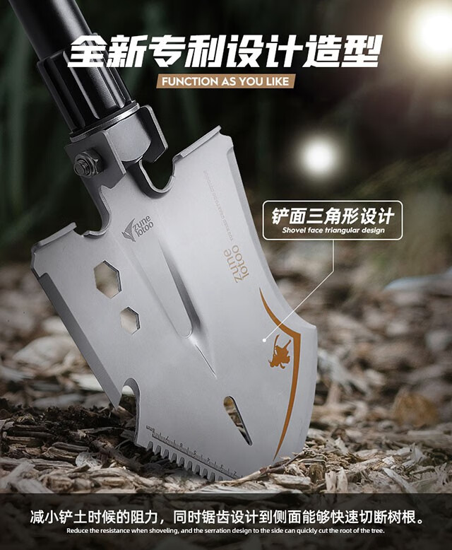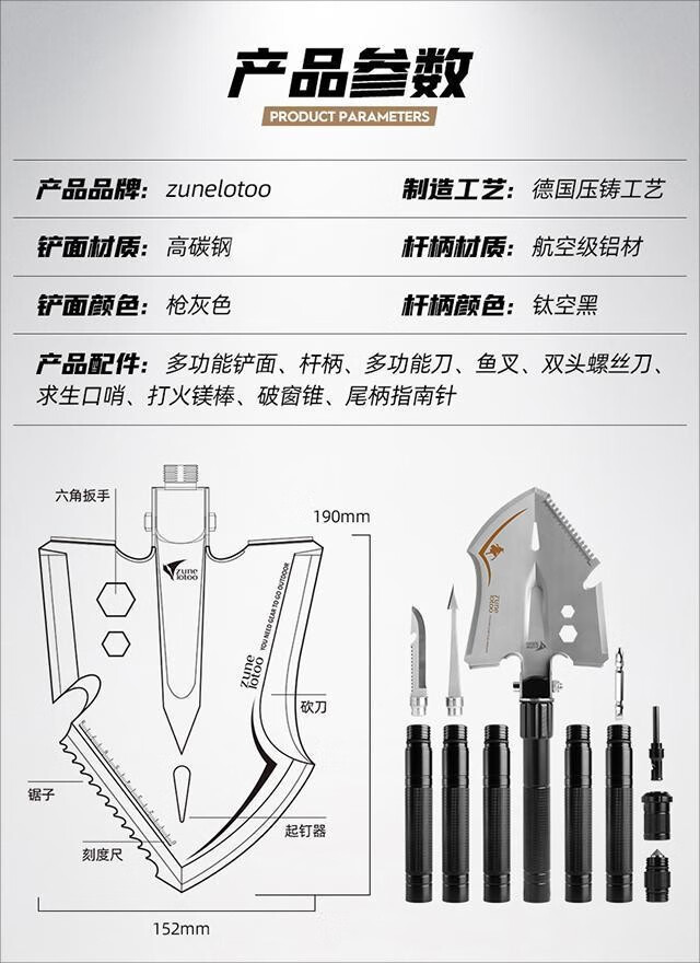 zune lotoo 多功能工兵铲户外兵工铲中国锰钢加厚钓鱼铁锹折叠工具加厚车载 6节顶配欧美版