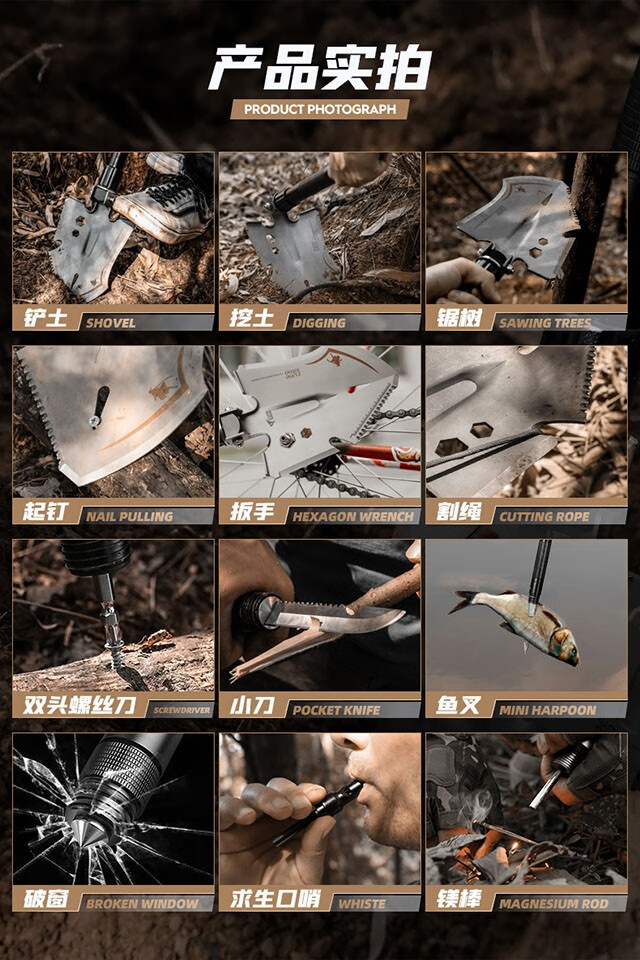 产品重量:有质感,功能强大 产品材质:很考究,做工精细 适用场景:野外生存,求生防护,自驾必备