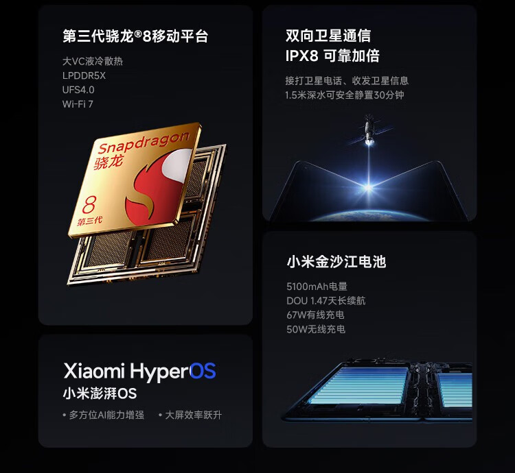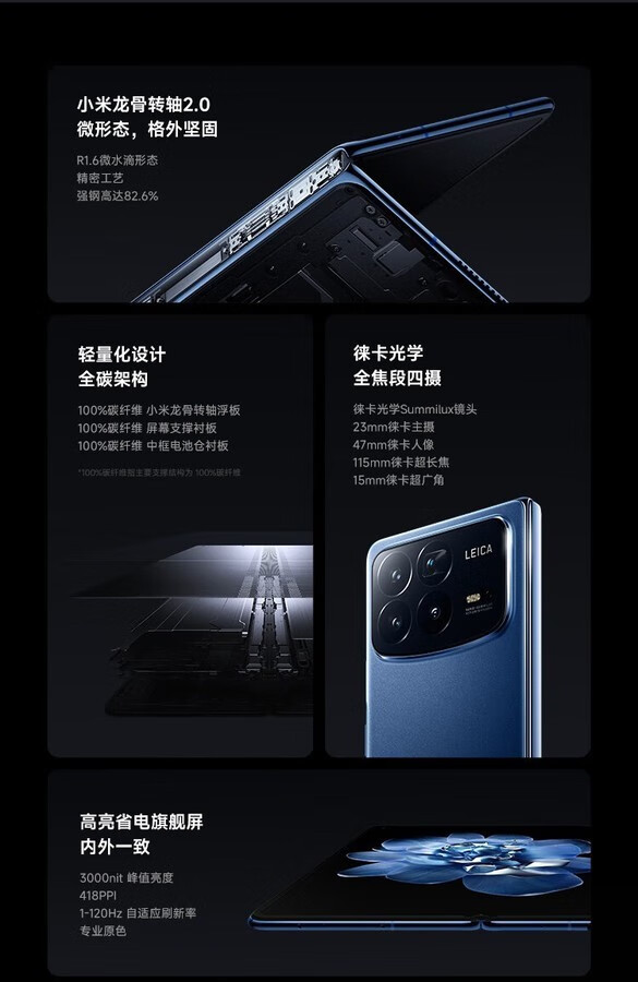 小米(MI)小米MIXFold4折叠屏 5G手机Fold3 徕卡光学卫星通信国行正品大屏 MixFold4【龙鳞纤维版】 16G+1T 赠运费险|详情咨询客服