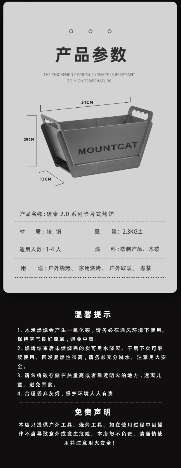 山牧猫山牧猫烧烤炉家用户外烧烤架不锈钢折叠烧烤炉便捷烤肉炉碳烤炉 收纳包+烤网+碳勾(3mm厚板材)