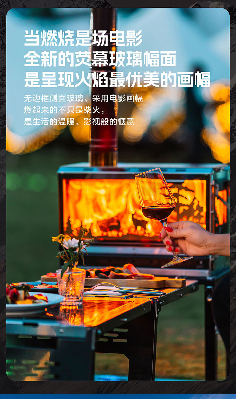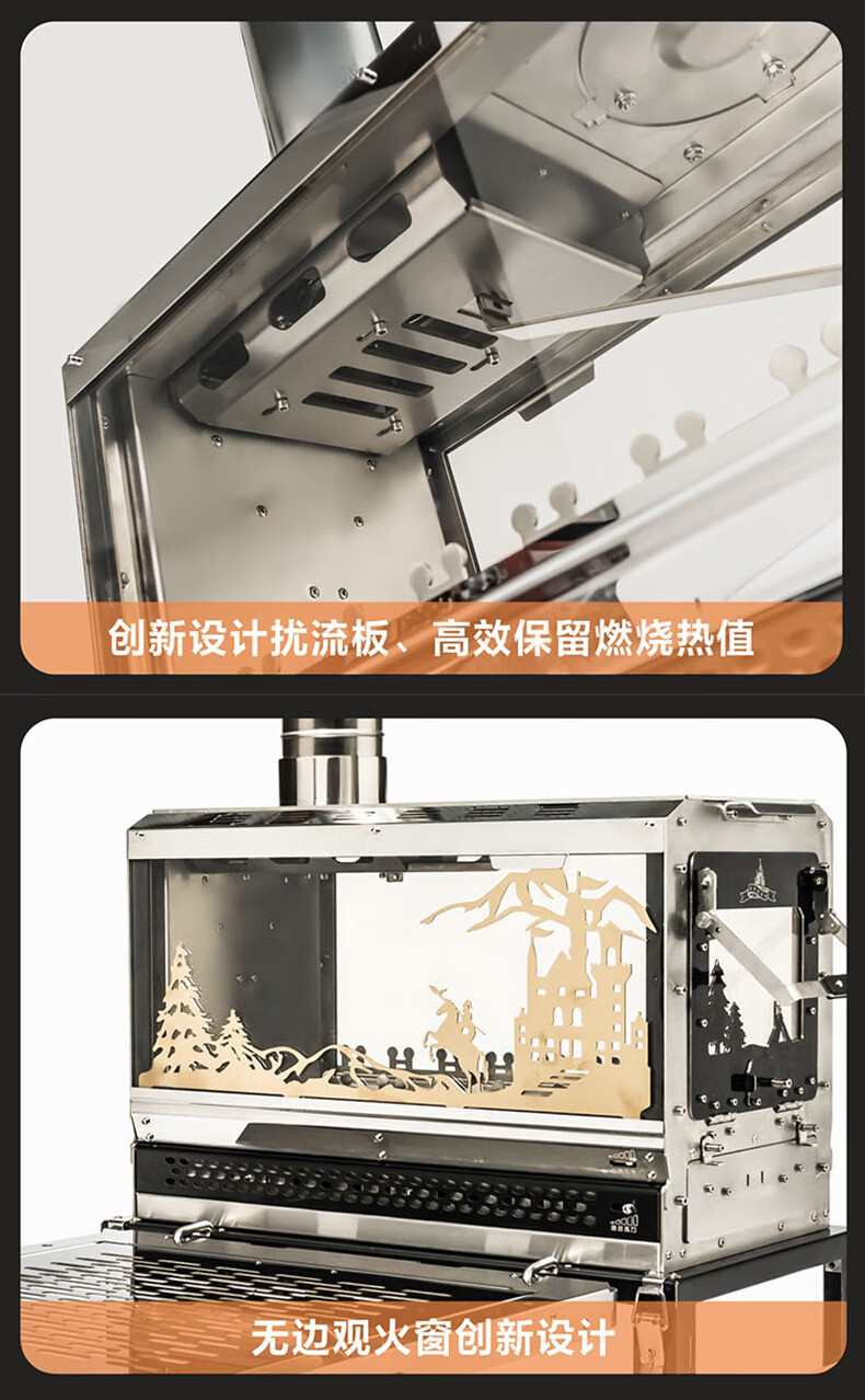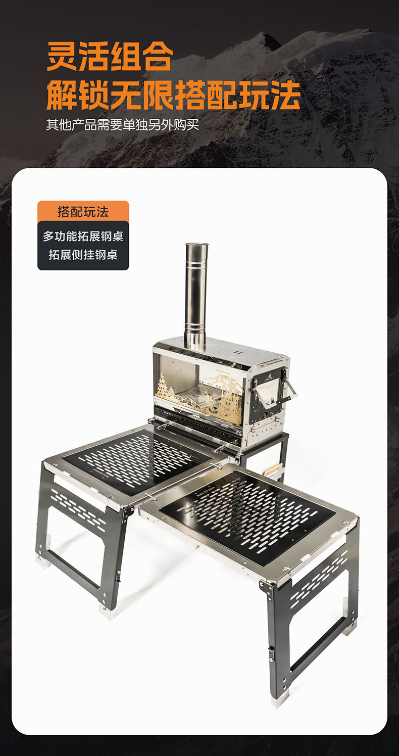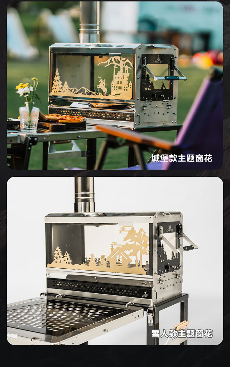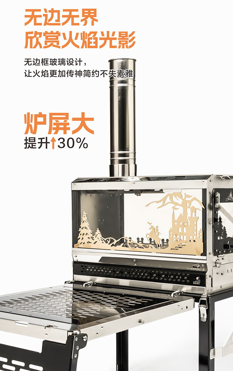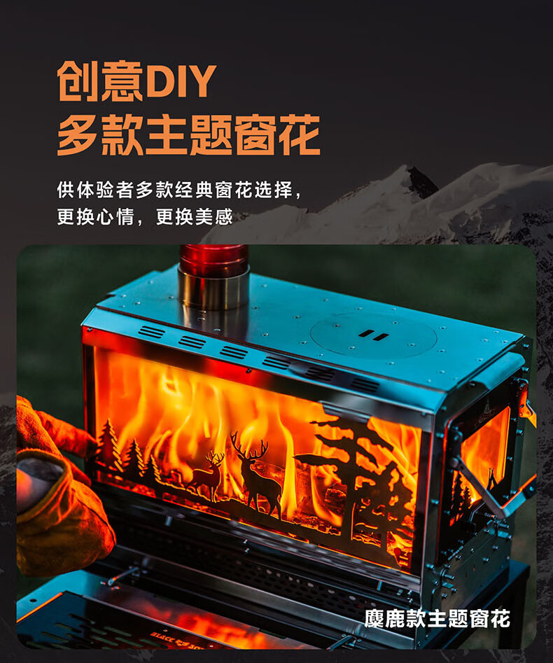 黑固 BLACK SOLID2025年新款魔力城堡户外露营柴火炉大观火面大热值冬季取暖炉 魔力城堡 城堡窗花款+侧边刚桌