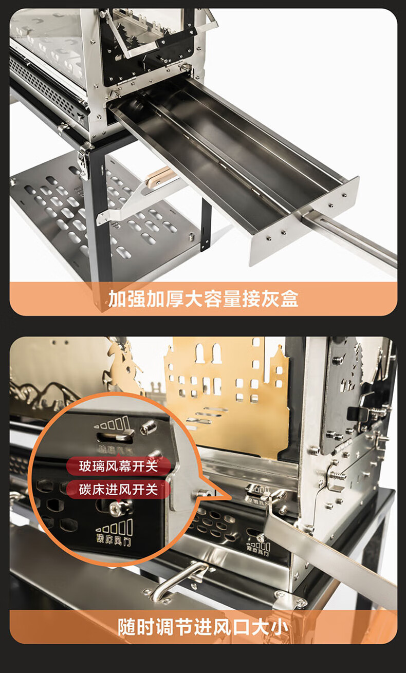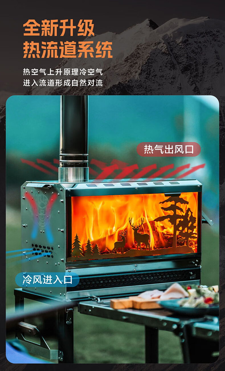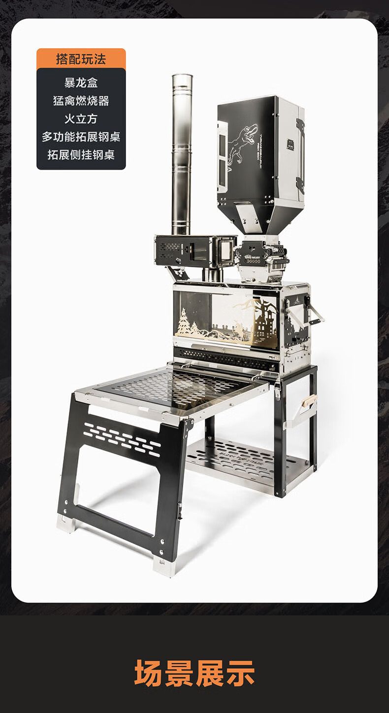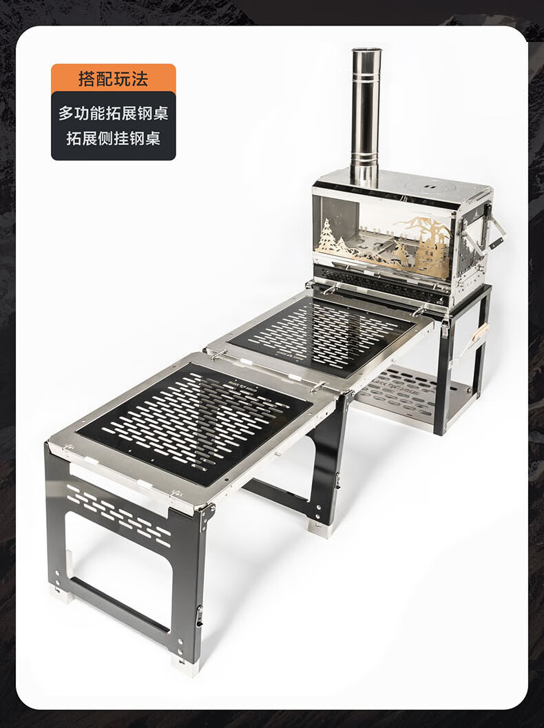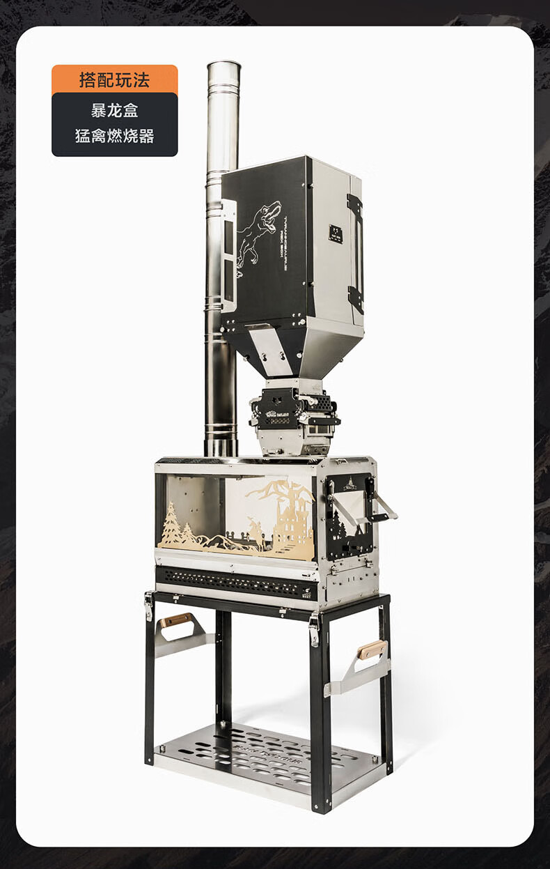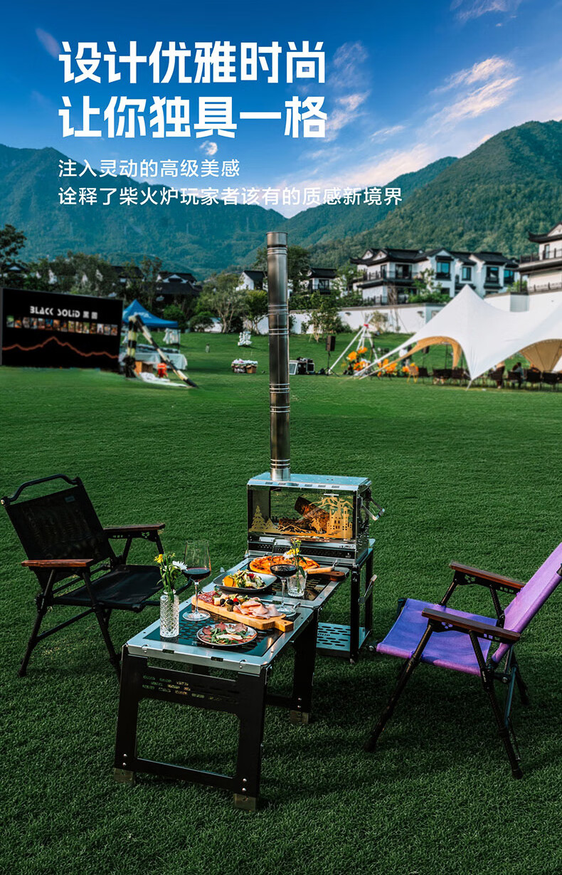 黑固 BLACK SOLID2025年新款魔力城堡户外露营柴火炉大观火面大热值冬季取暖炉 魔力城堡 城堡窗花款+侧边刚桌
