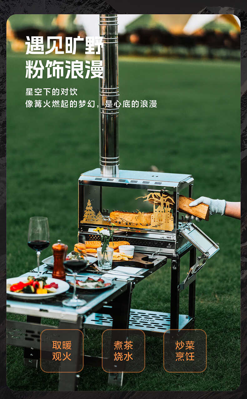 野之旅野之旅夜鹰M8户外多功能柴火炉便携式折叠露营帐篷取暖烧烤炉烤箱 M8开炉烤箱款