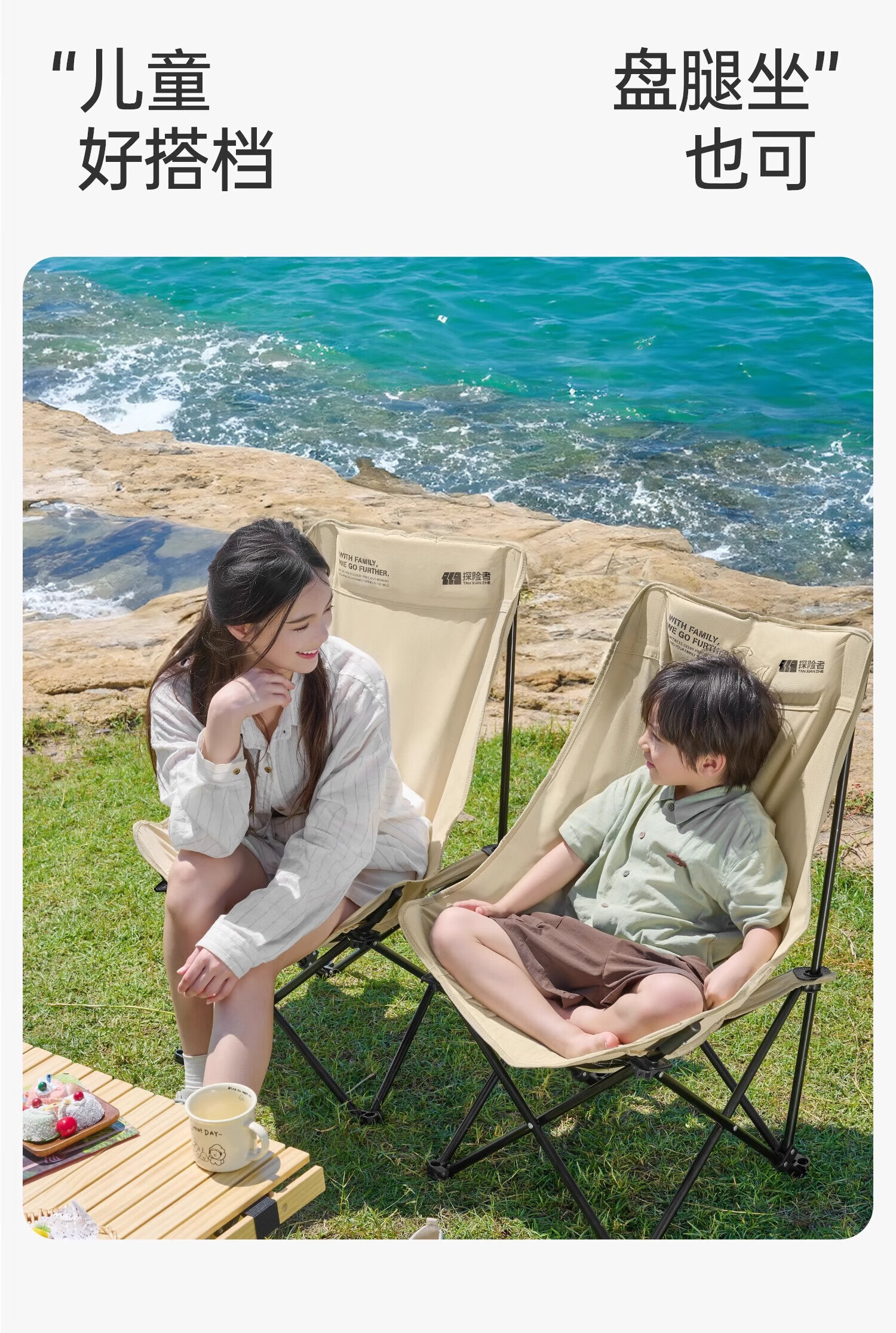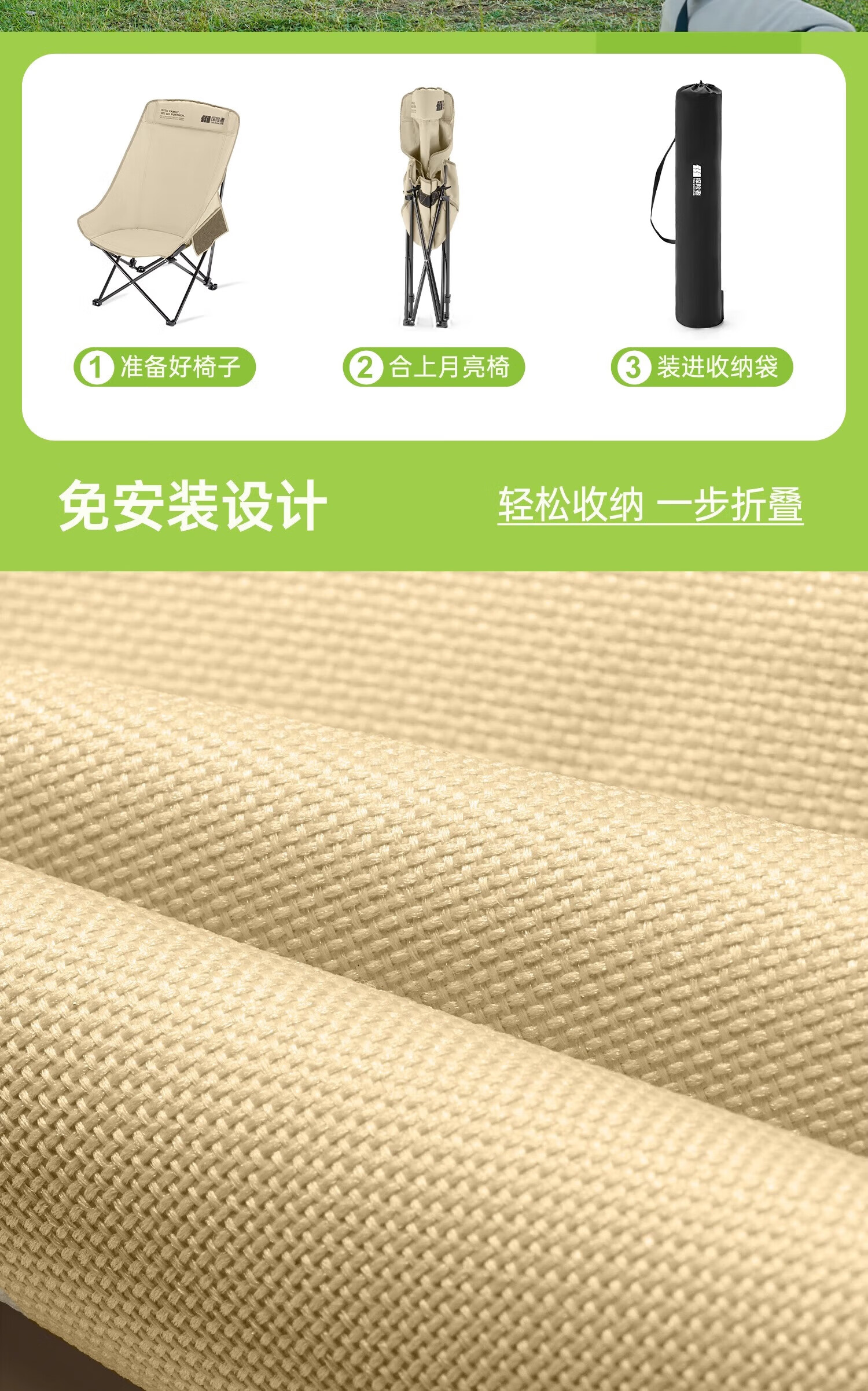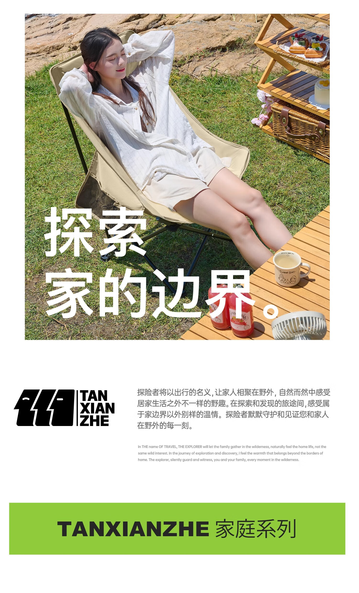 探险者(TAN XIAN ZHE)户外折叠椅露营椅月亮椅钓鱼椅便携折叠椅沙滩椅野餐桌椅全套装备 高靠背豪华月亮椅卡其
