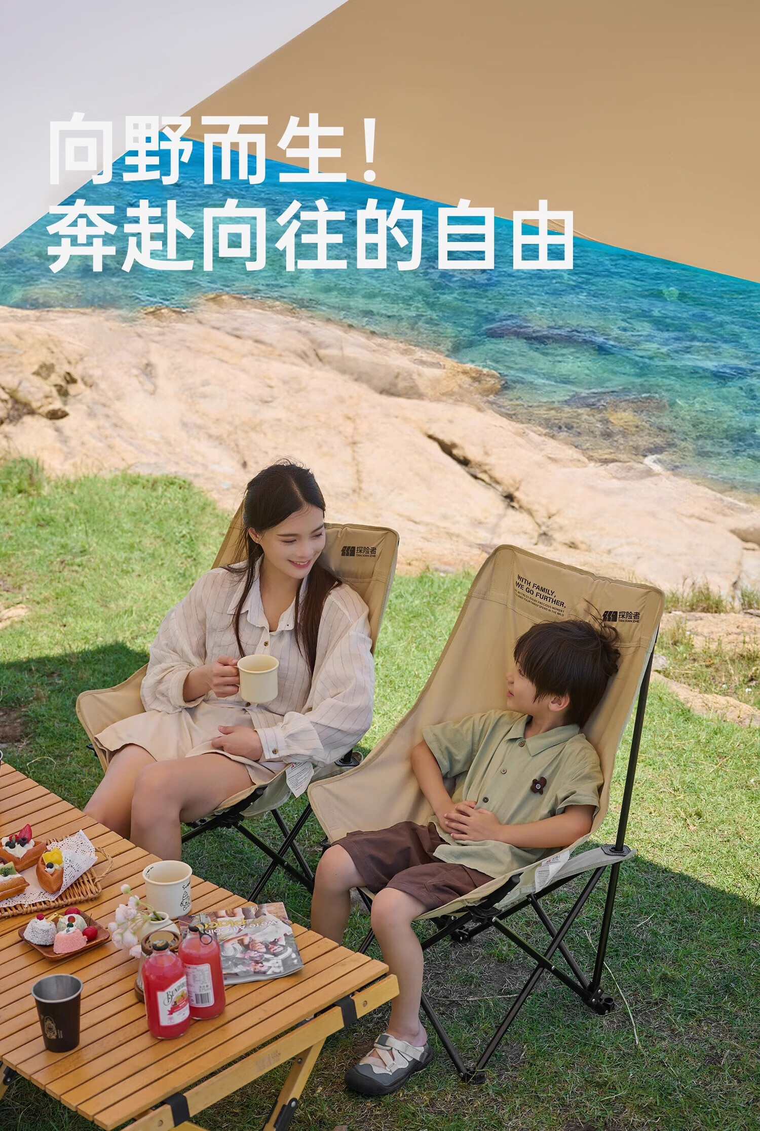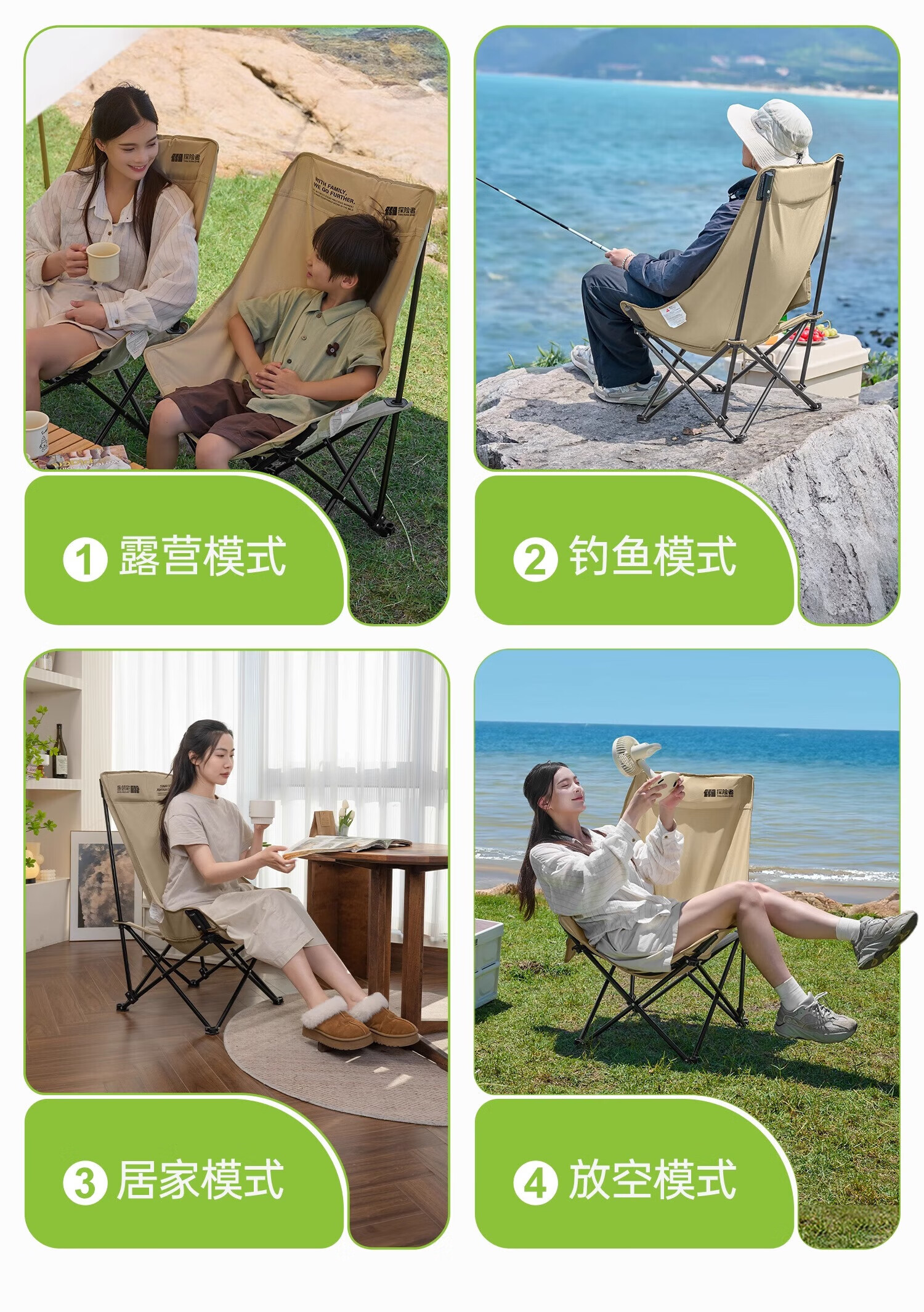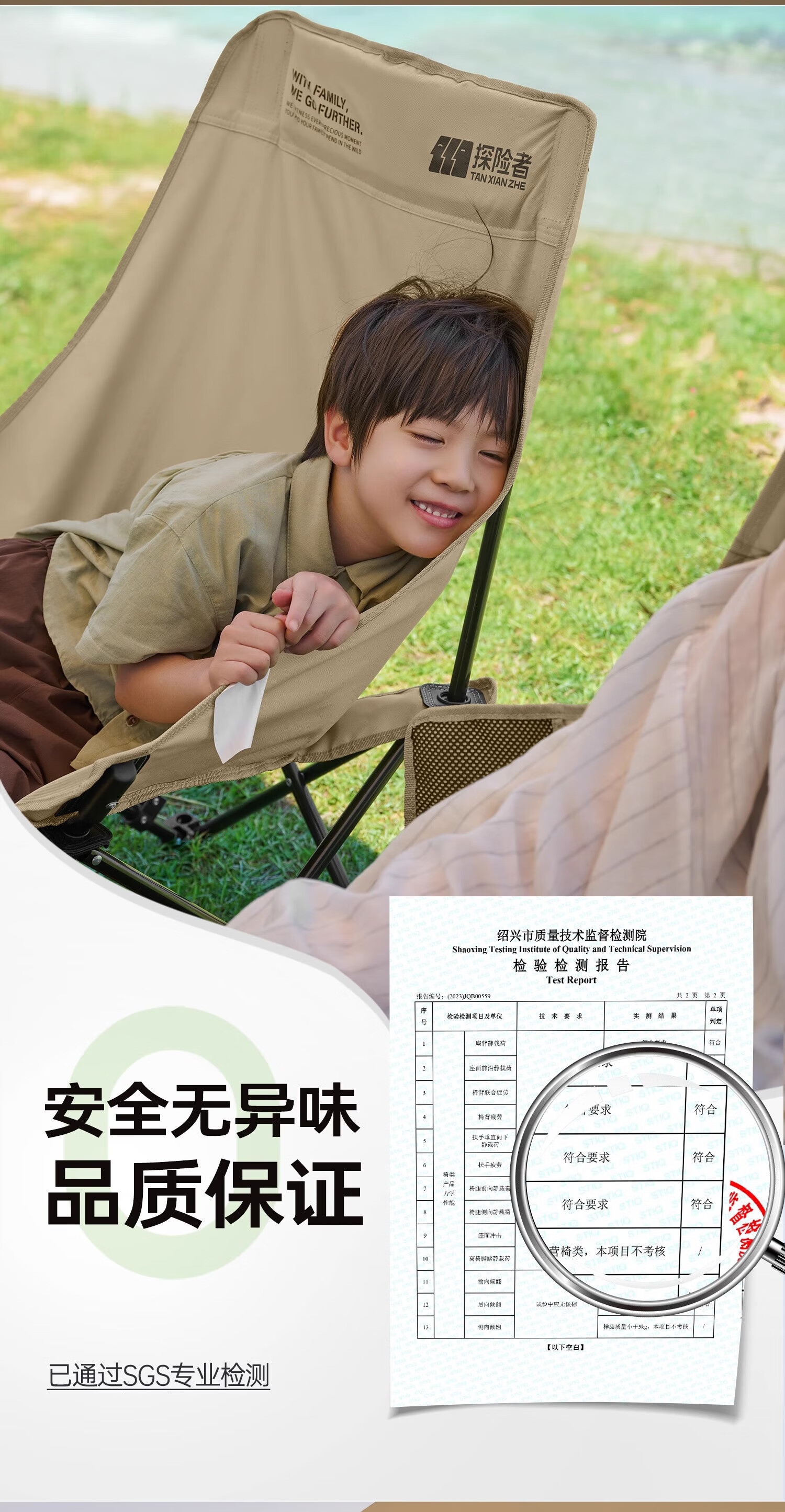 探险者(TAN XIAN ZHE)户外折叠椅露营椅月亮椅钓鱼椅便携折叠椅沙滩椅野餐桌椅全套装备 高靠背豪华月亮椅卡其