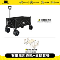 探险者户外露营推车聚拢型露营车营地车野营可折叠小推车野餐车桌板 300L 石墨黑坦克轮+桌椅套餐