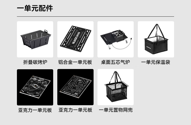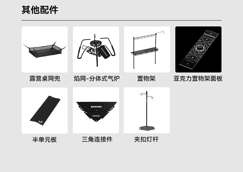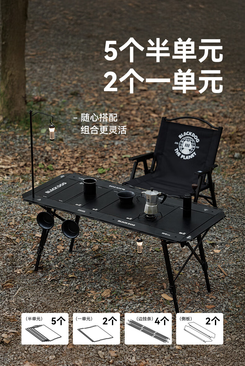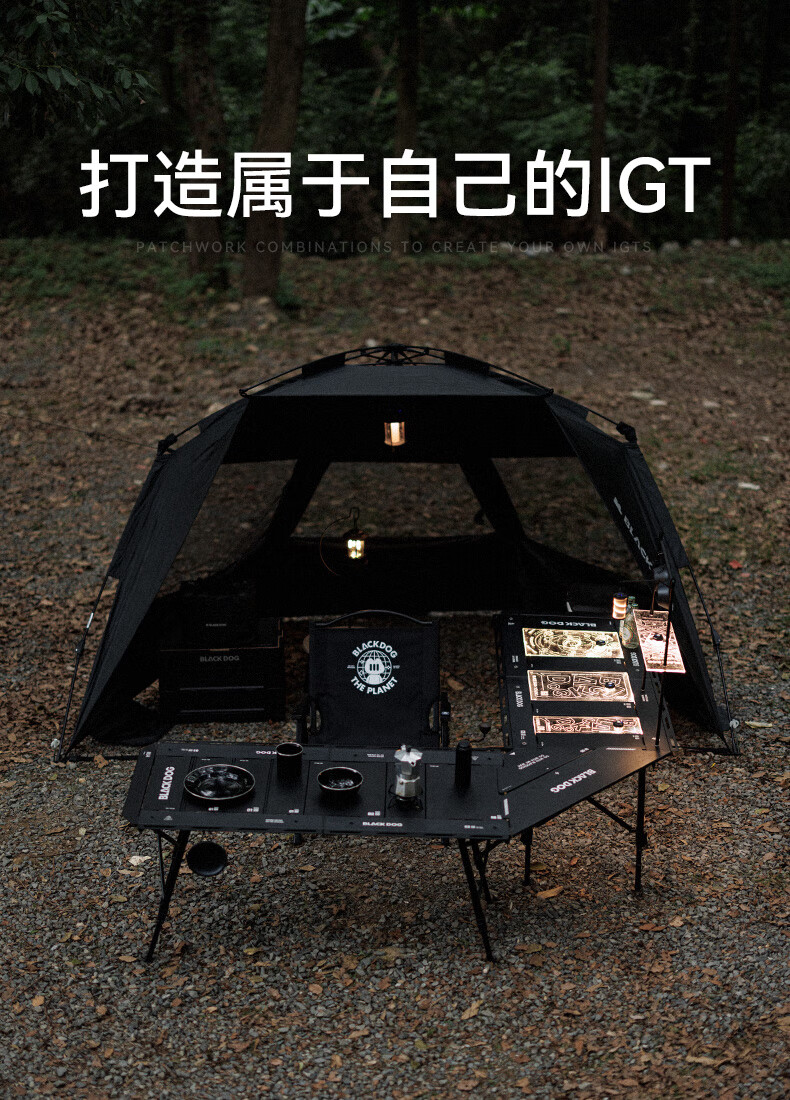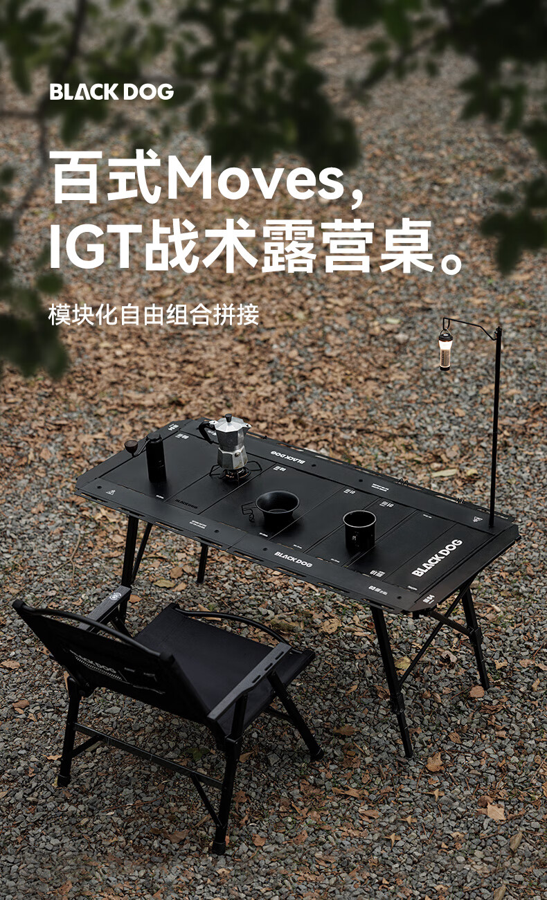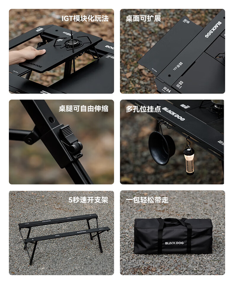 black dog黑狗户外百式IGT折叠桌铝合金黑化露营桌单元板组合可调节野营桌 焰网-分体式气炉-蜘蛛炉