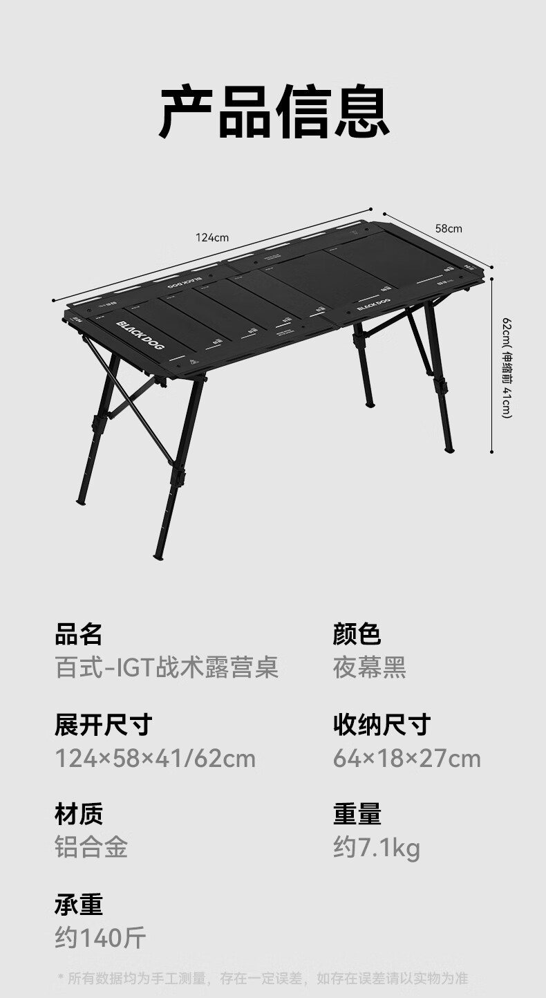 black dog黑狗铝合金折叠桌户外升降桌轻量化模块桌IGT战术露营桌可拓展 三角连接件