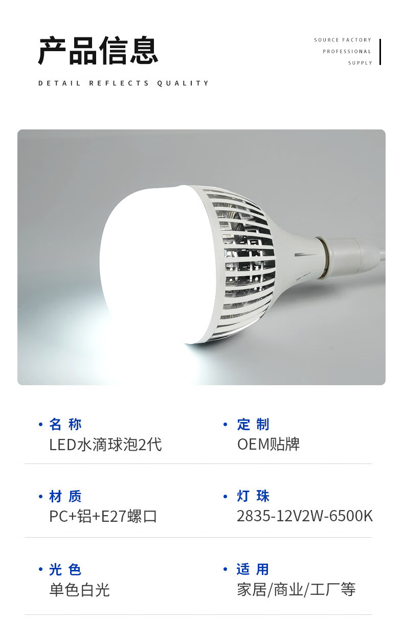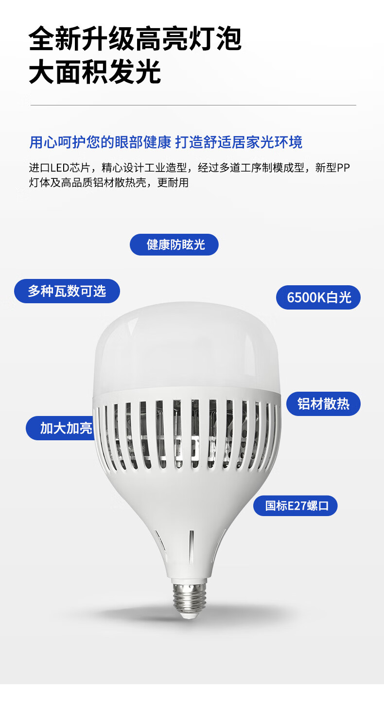 LED大功率灯泡超亮节能白光鳍片灯E27螺口工厂车间仓库家用照明灯 二代水滴80W【超亮款】