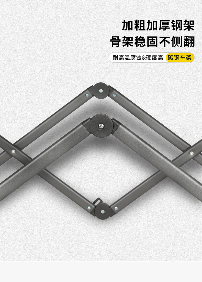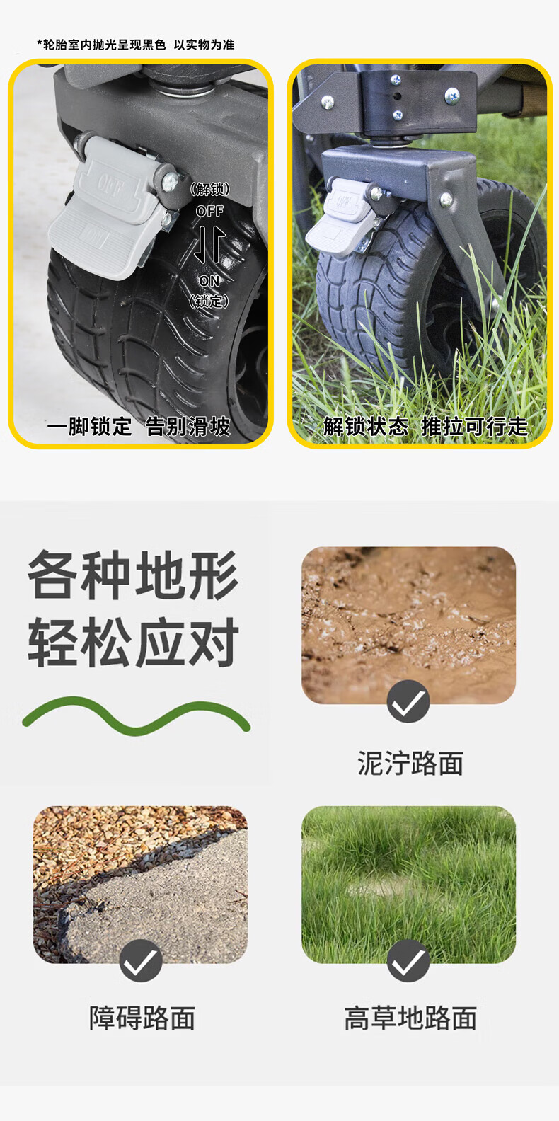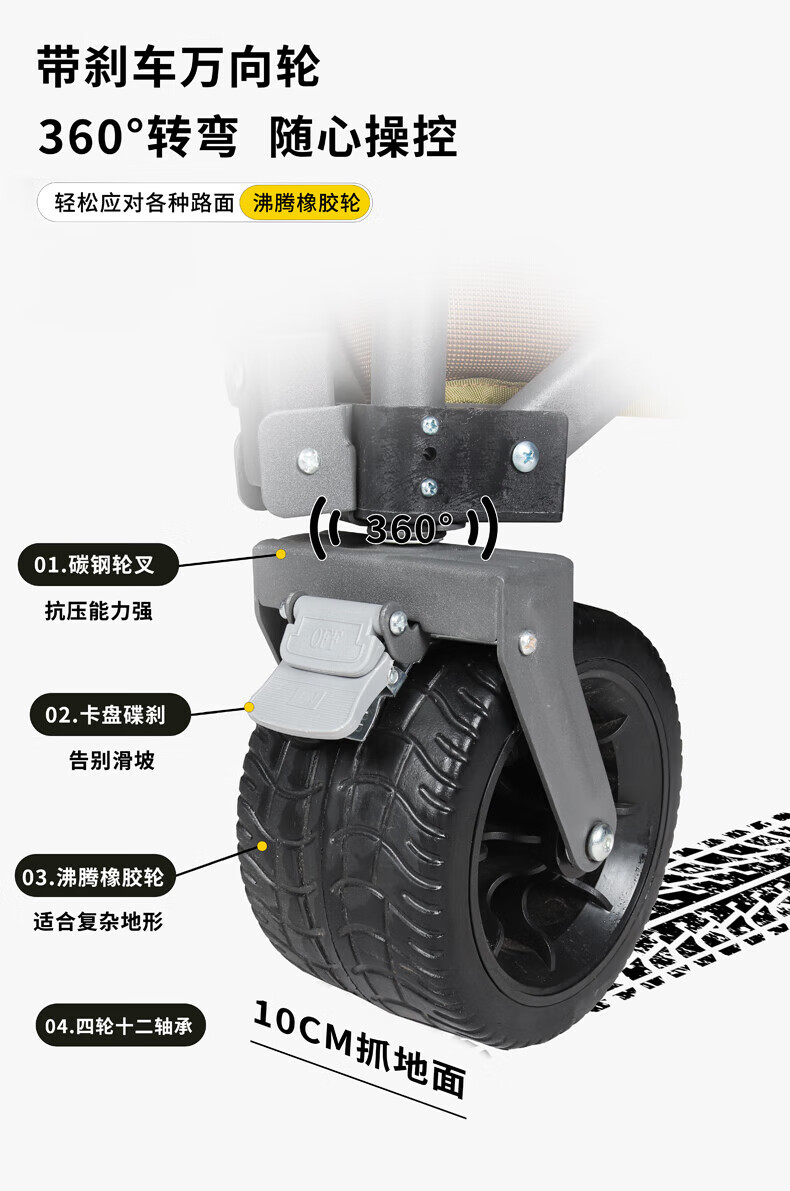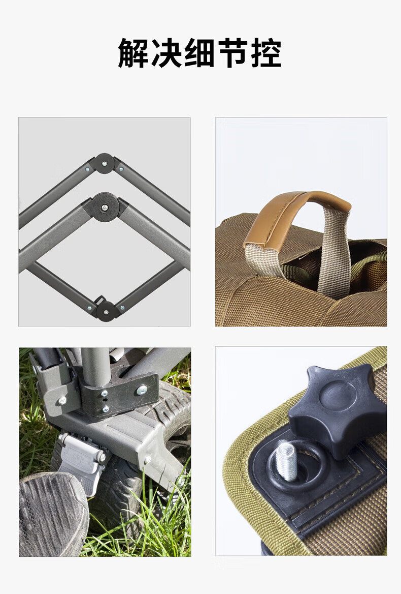 推拉顺滑无声,折叠设计节省空间,细节处理精致细腻,车轮灵活,轮胎很大,耐用性强,组装简单,用料很扎实,车架非常结实,能装很多东西,质量很好