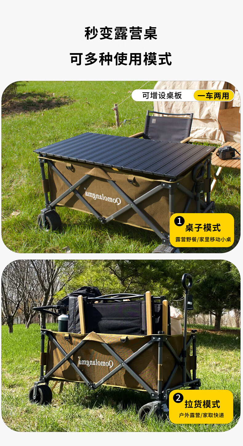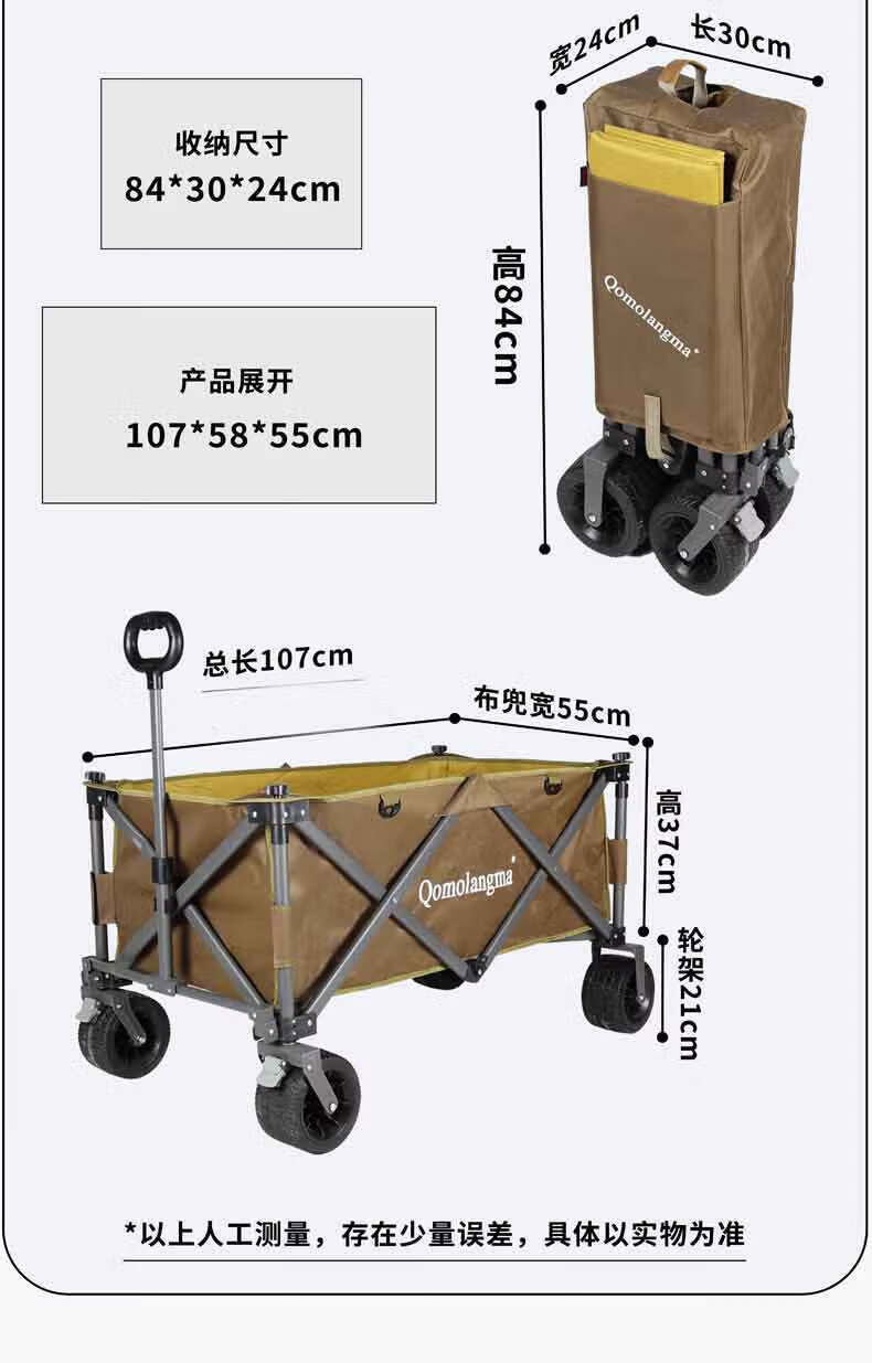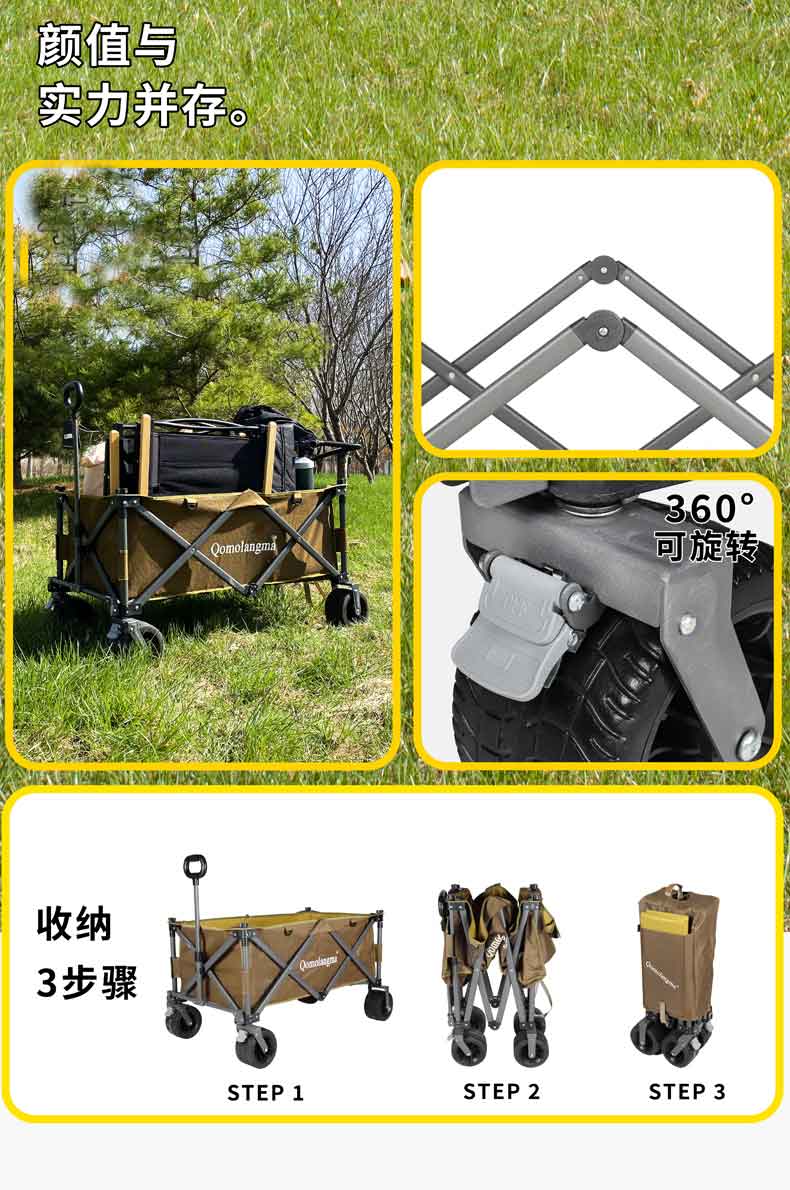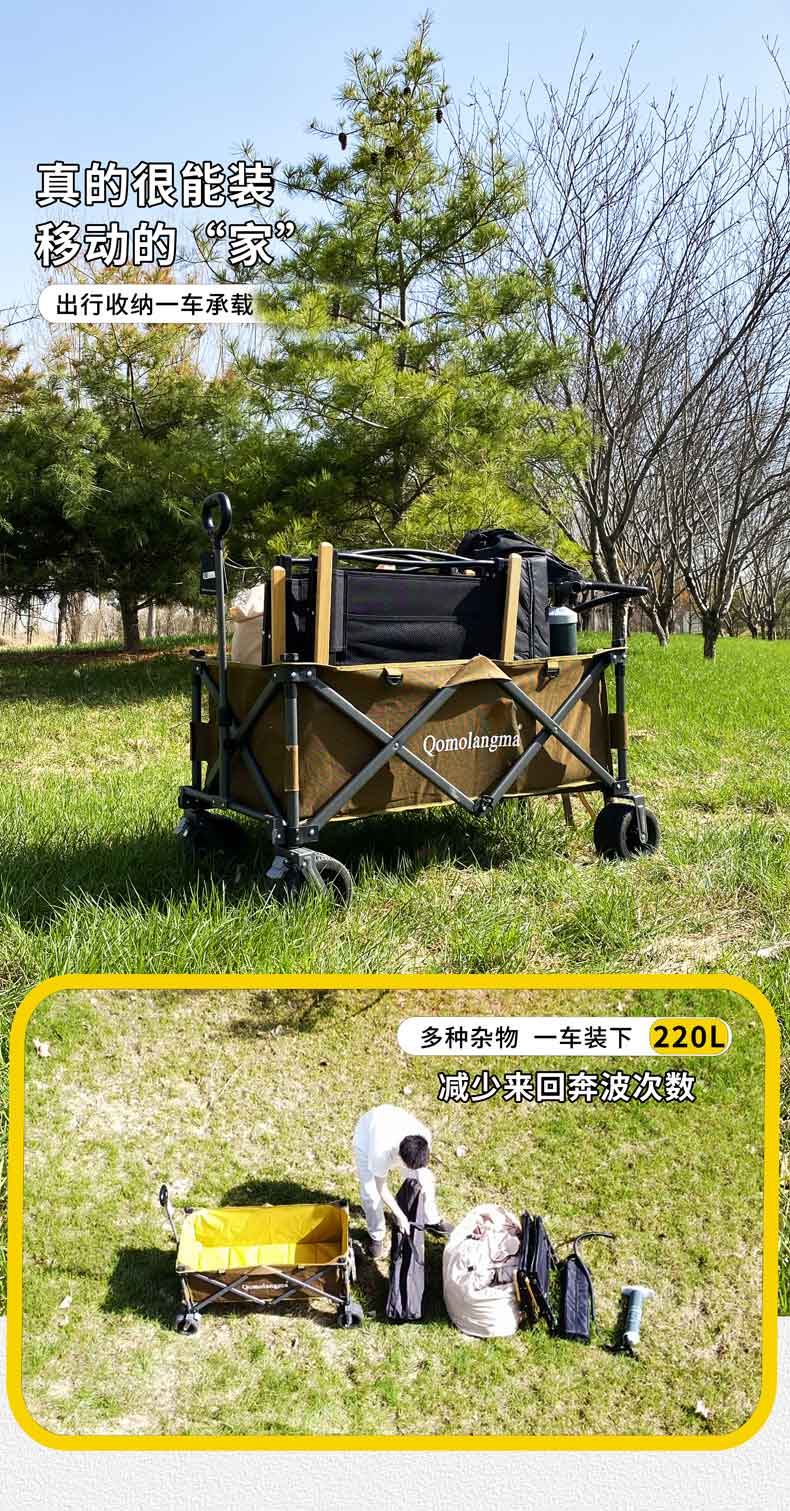 QOMOLANGMA珠穆朗玛营地车露营车户外折叠手推车野营郊游烧烤野餐 Qomolangma_QA5K咖色轻型露营车