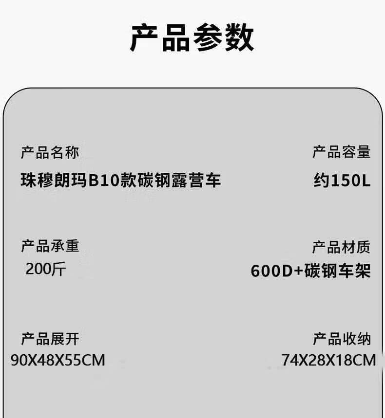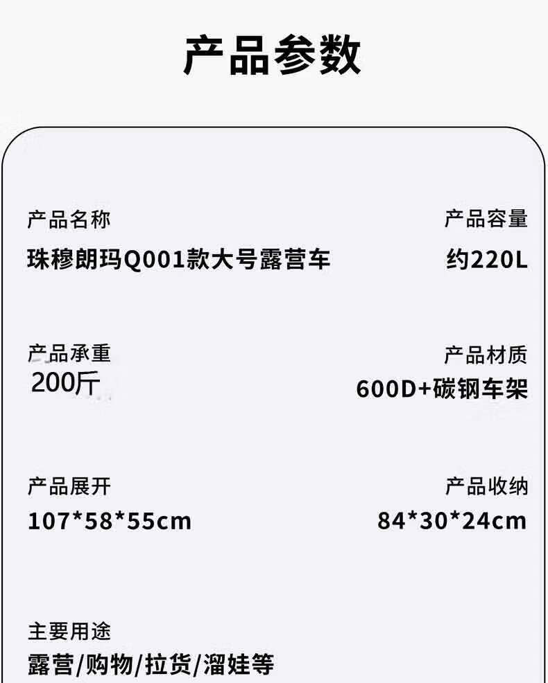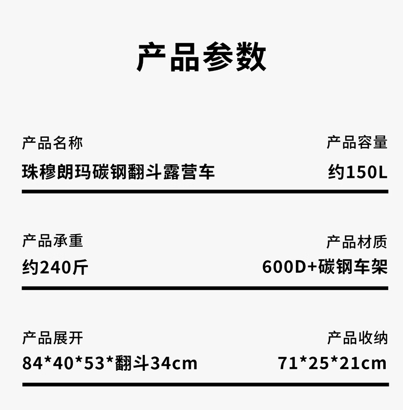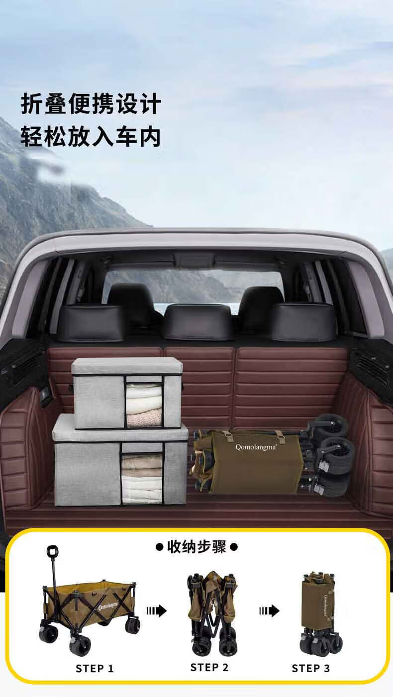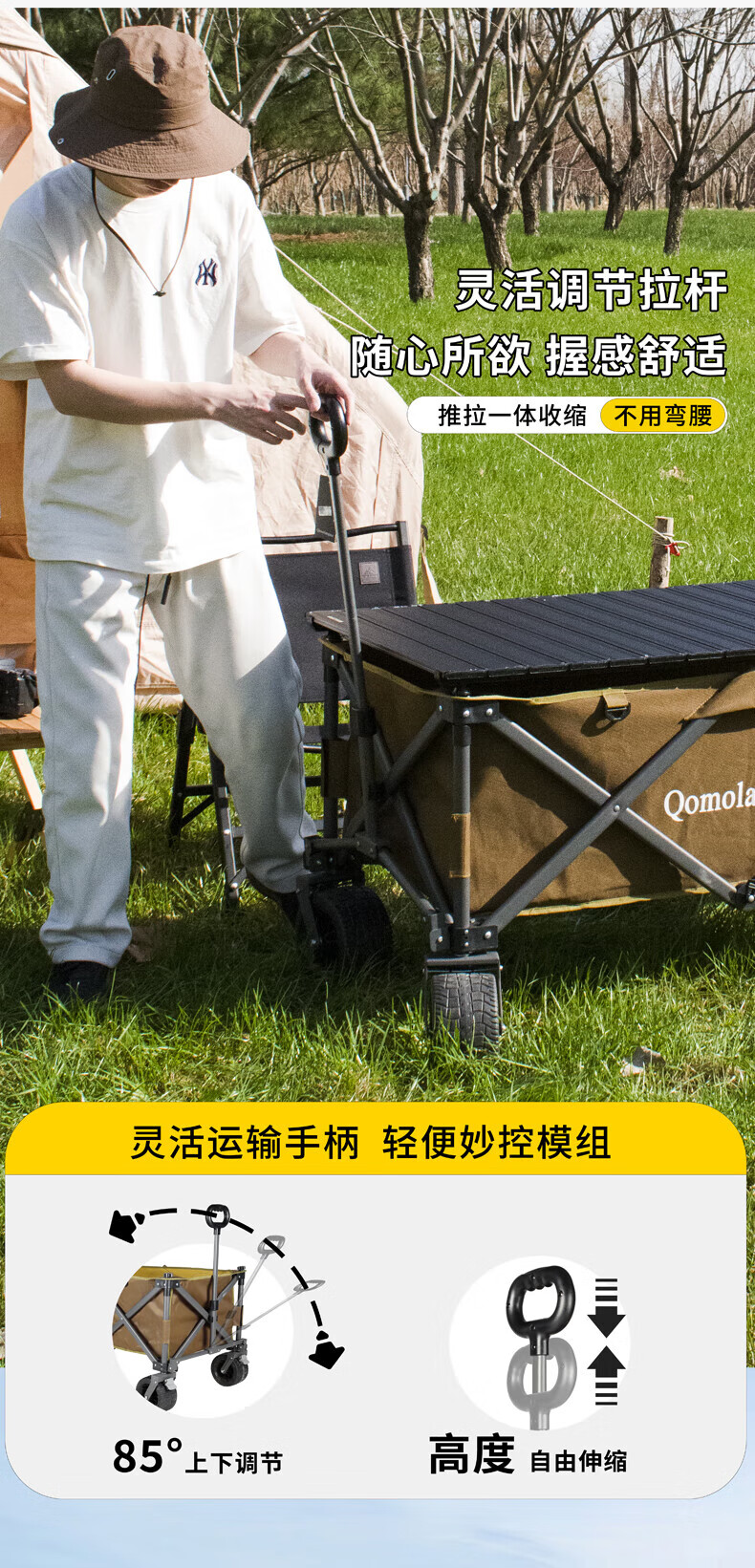 QOMOLANGMA珠穆朗玛营地车露营车户外折叠手推车野营郊游烧烤野餐 Qomolangma_QA5K咖色轻型露营车